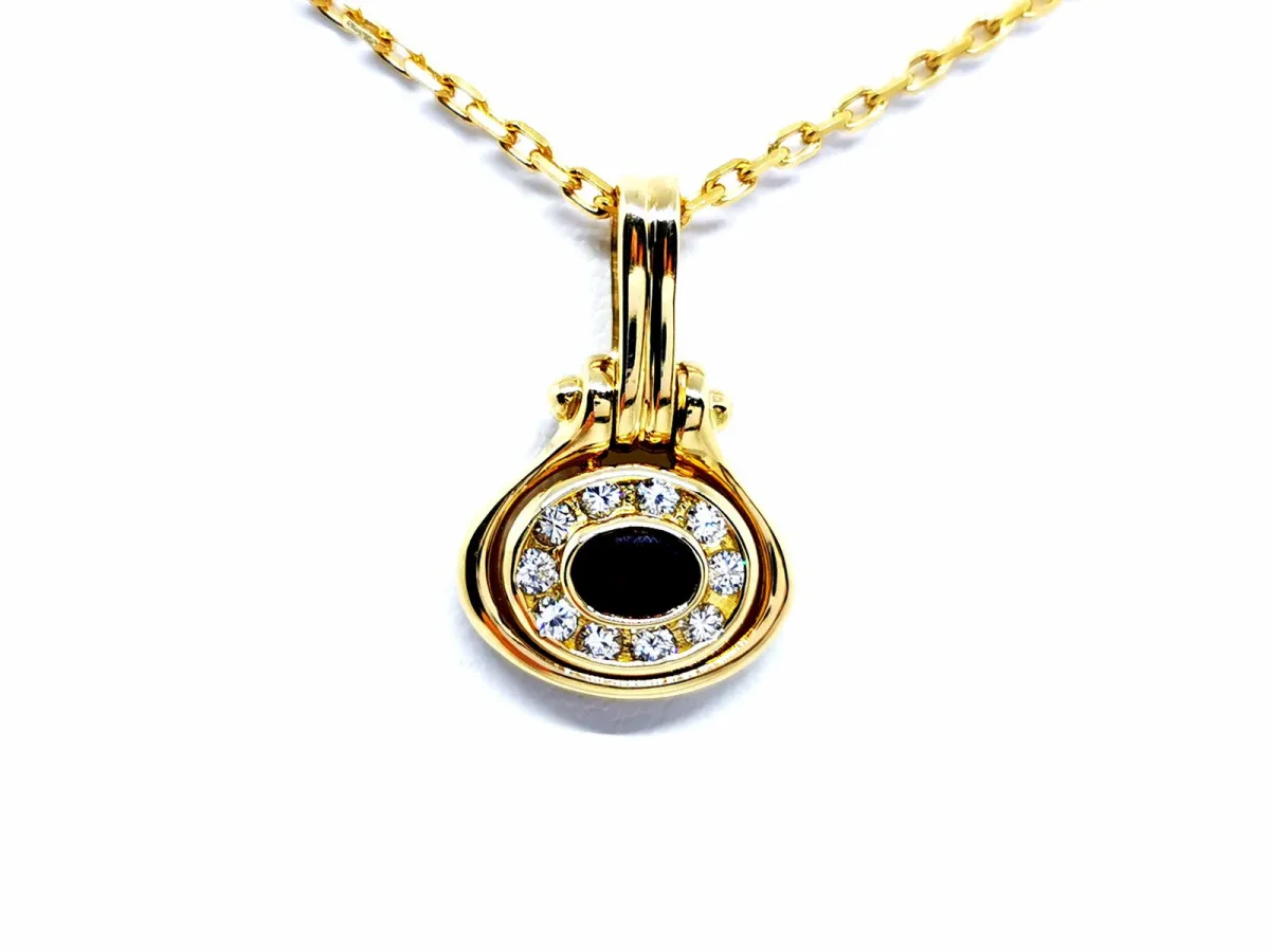 Collier en or jaune 750 millièmes (18 carats), pendentif serti d’un rubis ovale d’environ 0,33 ct, et de 10 diamants taille brillant G-H VSI pour environ 0,20 ct au total, dimensions pendentif (bélière incluse): 2,23 cm x 1,46 cm, chaîne maille forçat, longueur chaîne: 40 cm, largeur chaîne: 0,16 cm, poids total: 8,20 g, poinçon […]