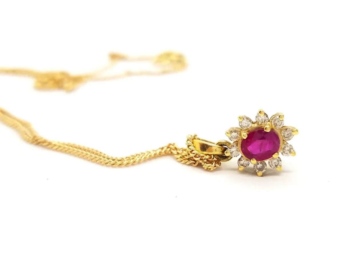 Collier Chaîne + pendentif Or jaune Rubis, Diamant
