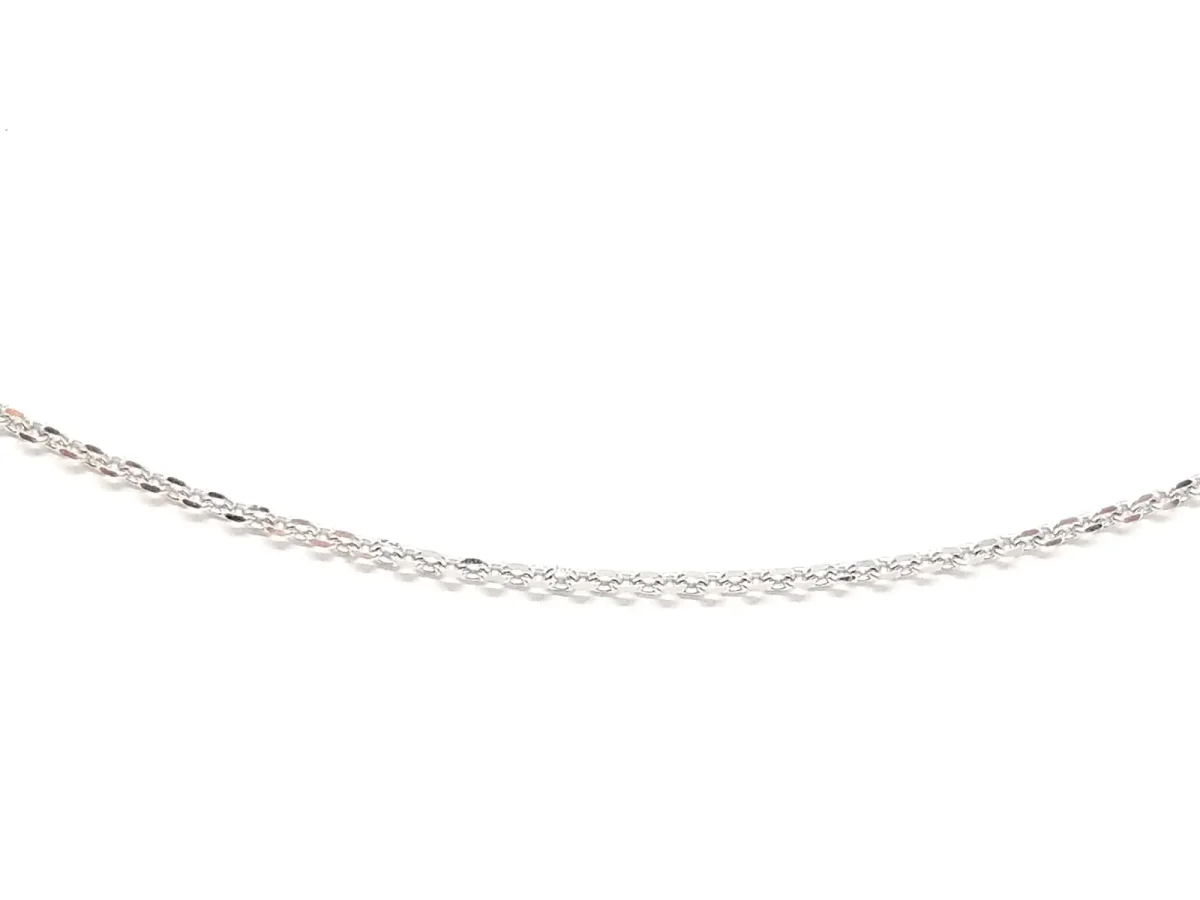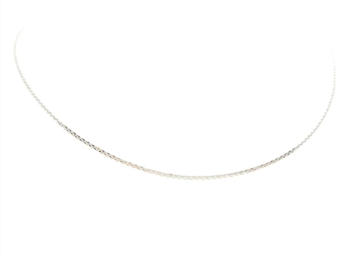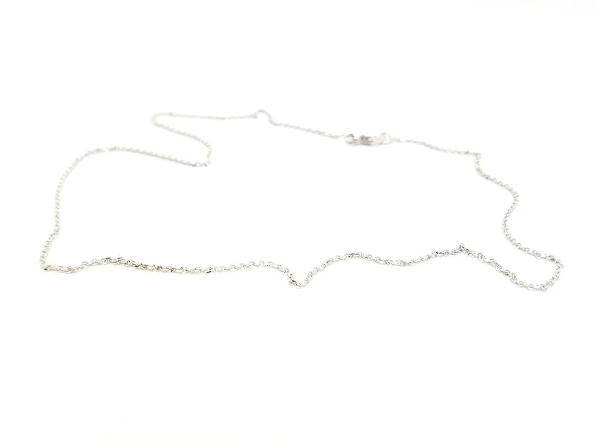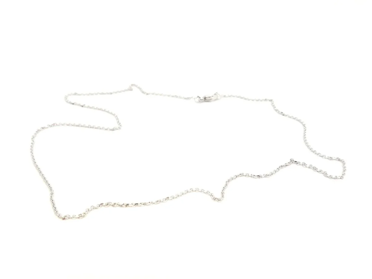 Collier chaînette en or blanc 750 millièmes (18 carats) testé, maille forçat, longueur: 40 cm, largeur: 1,1 mm, poids total: 2,43 g, état neuf