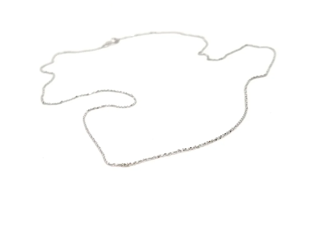 Chaîne en or blanc 750 millièmes (18 carats), maille forçat, longueur: 45 cm, largeur: 0,09 cm, poids total: 1,48 g, poinçon tête d’aigle, excellent état