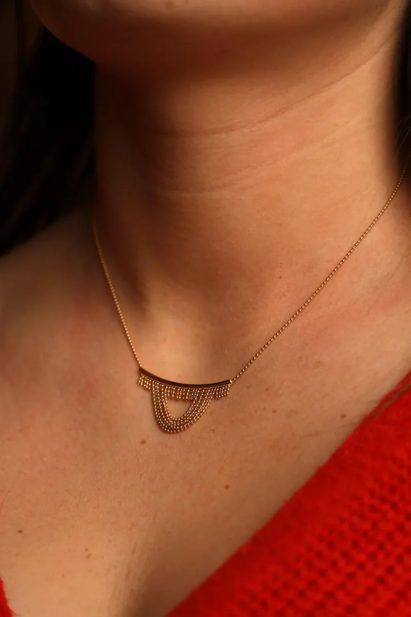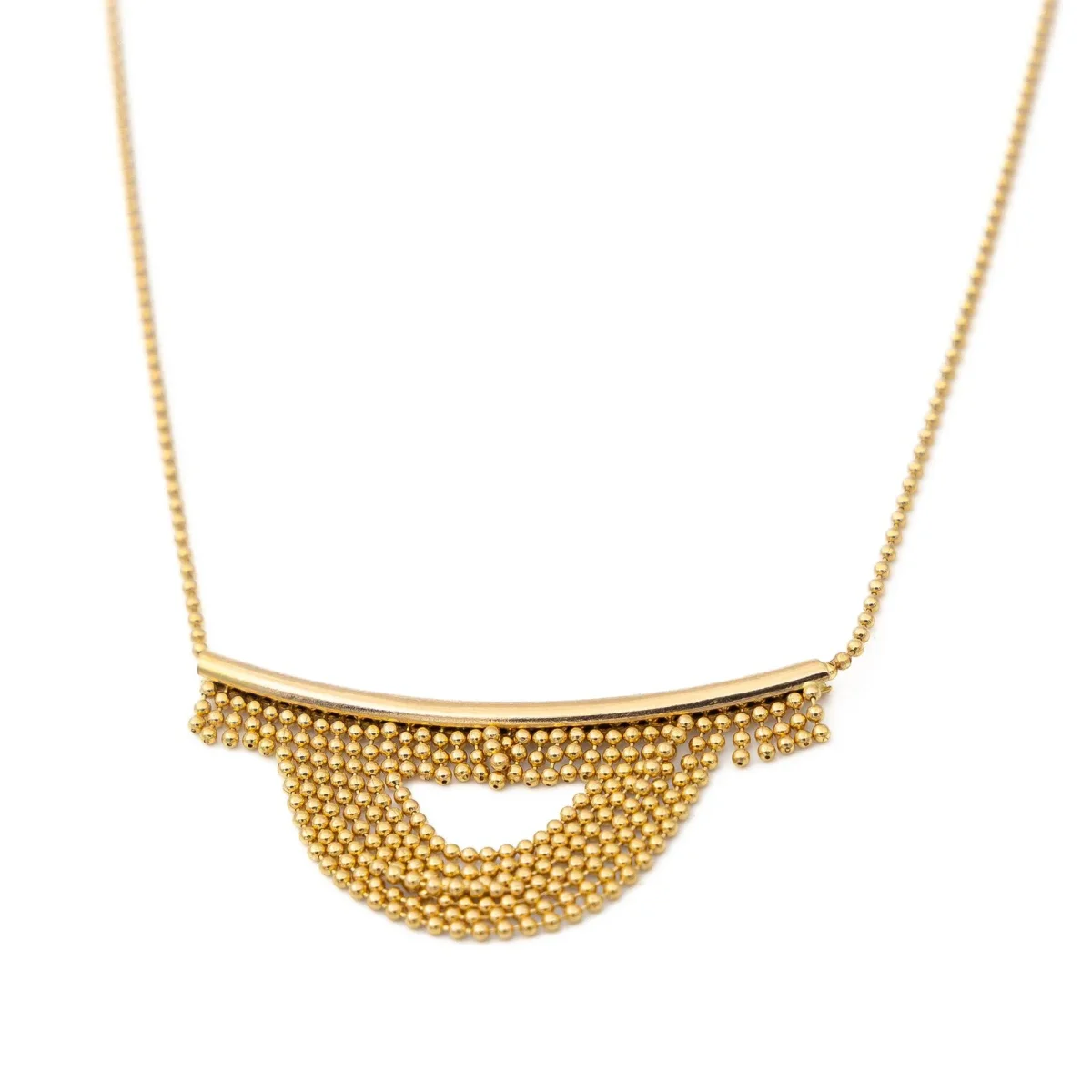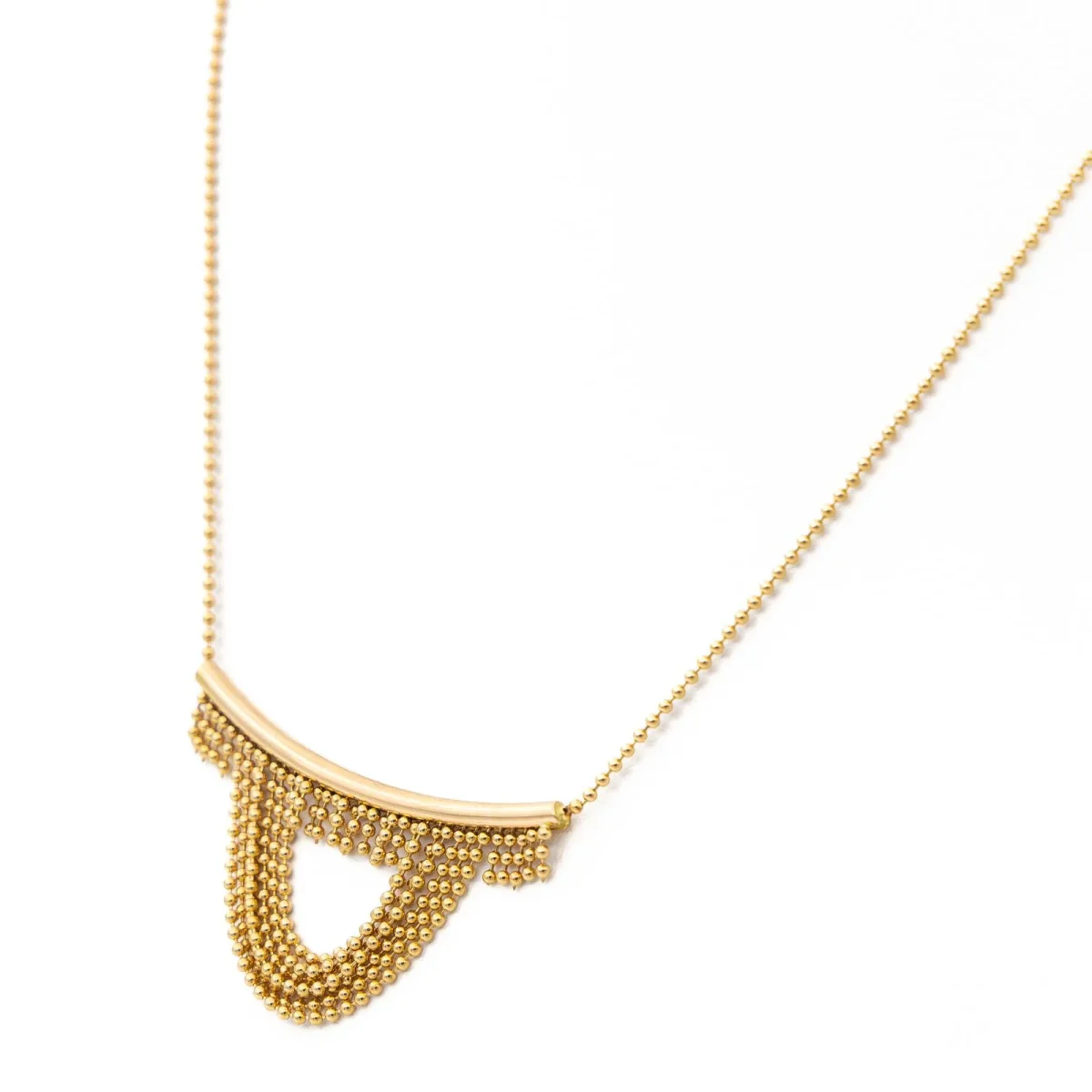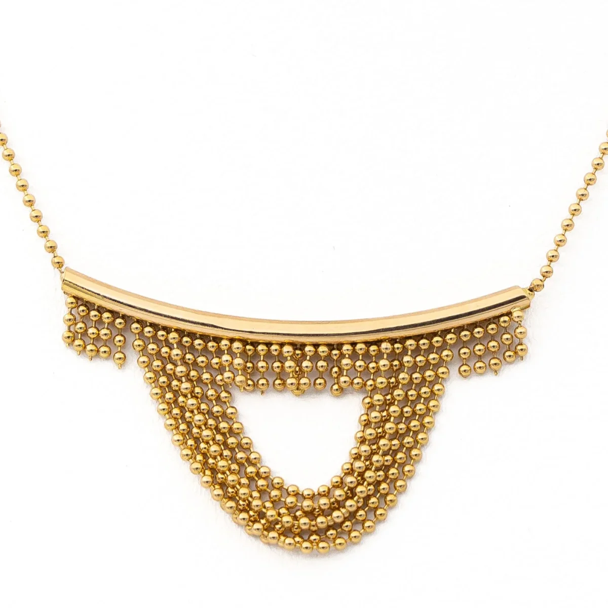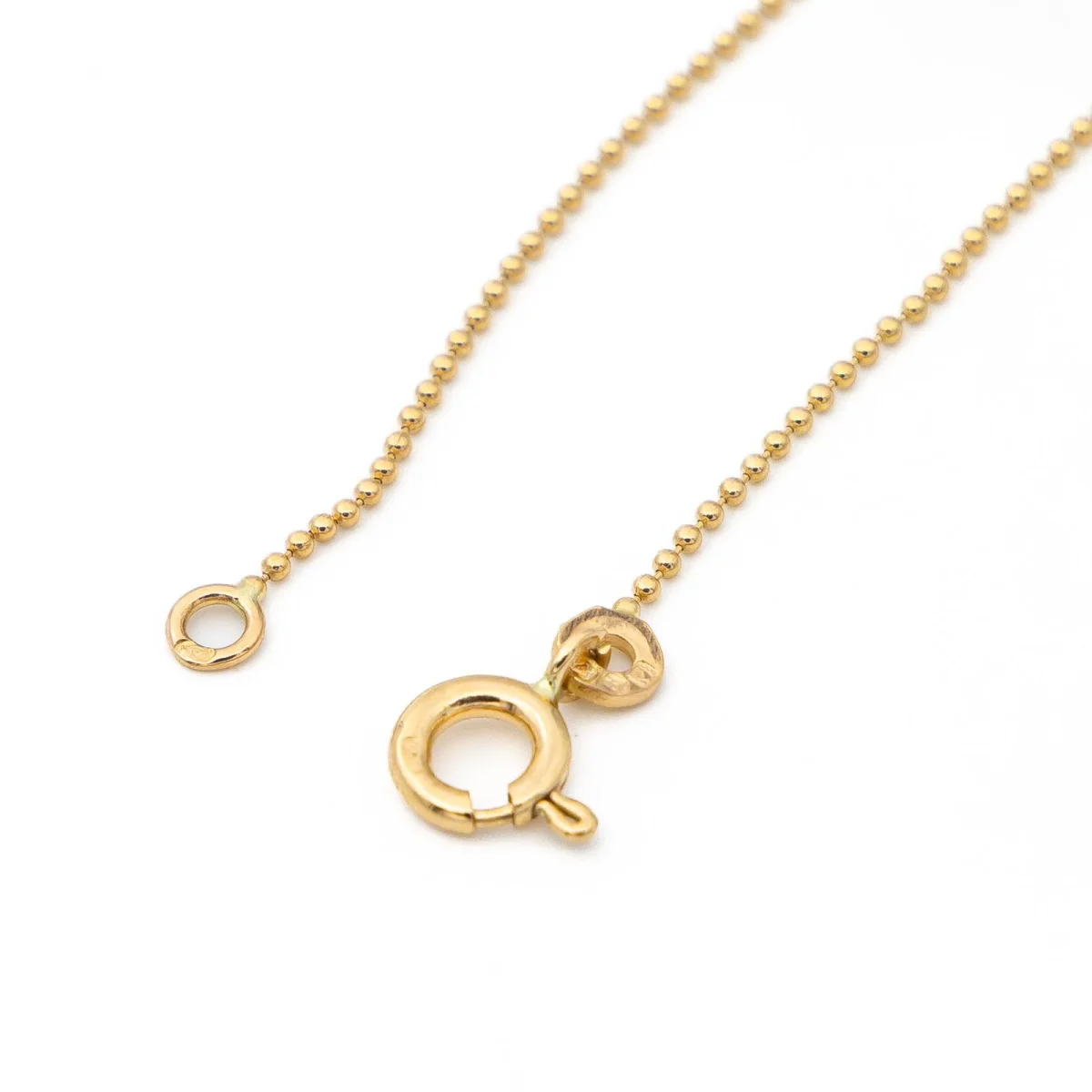 Collier en or jaune 750 millièmes (18 carats), maille boule, taille du pendant : 1,60 cm, largeur de la maille : 0,10 cm, longueur : 39 cm, poids total : 4,28 g, poinçon hibou, excellent état