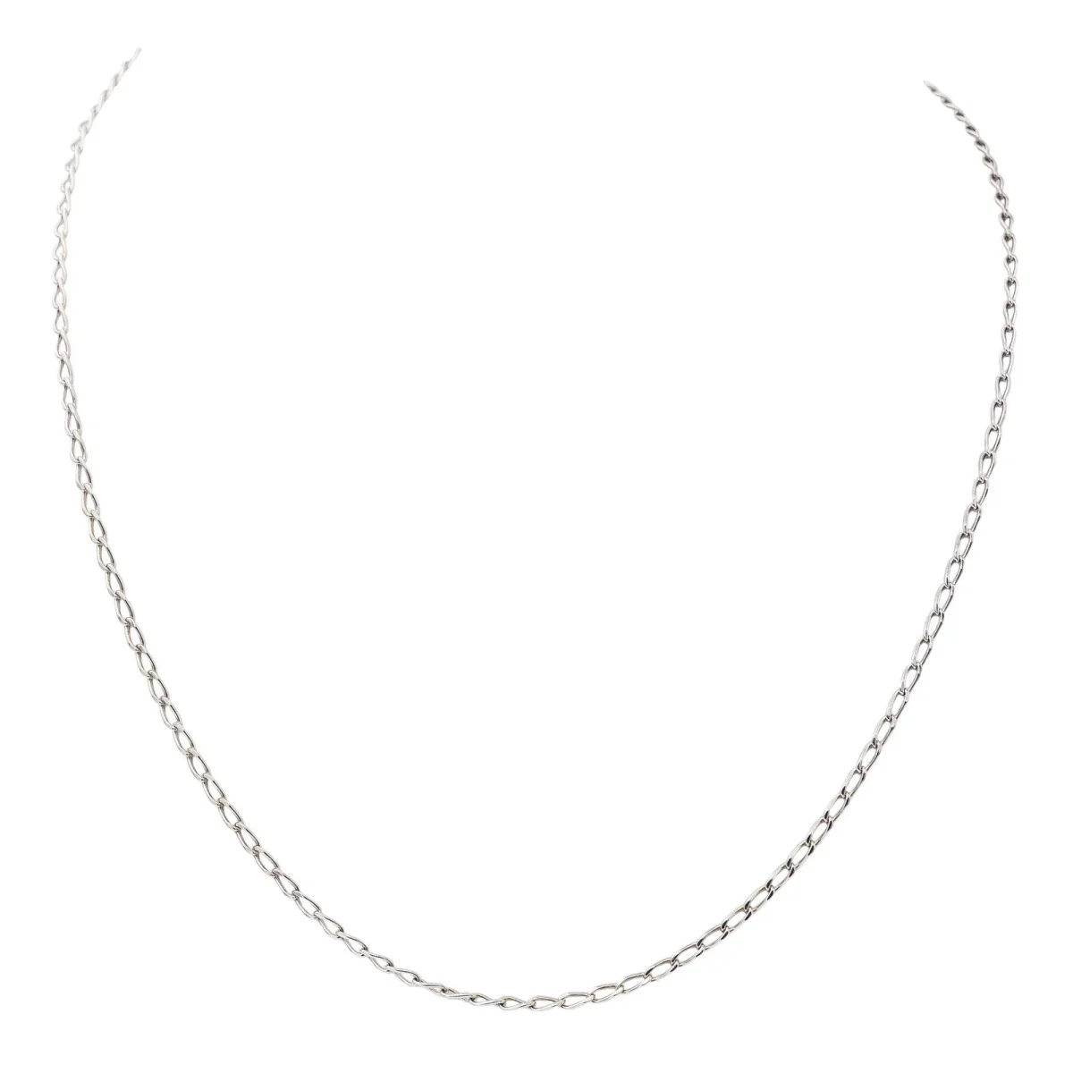 Chaine en or blanc 750 millièmes (18 carats), maille cheval, longueur: 60 cm, largeur: 0,23 cm, épaisseur: 0,11 cm, poids total: 8,70 g, poinçon tête d’aigle, excellent état