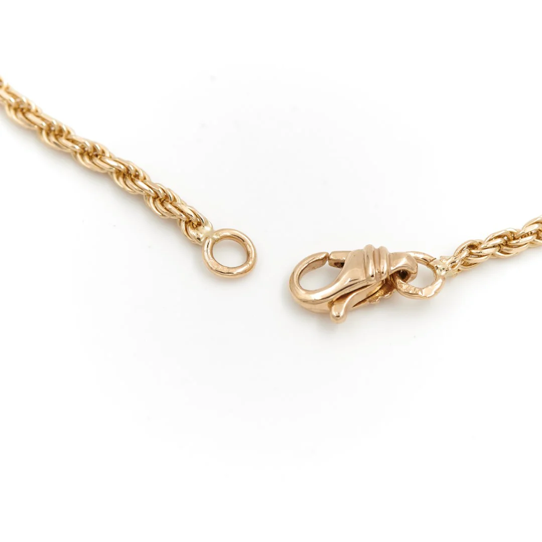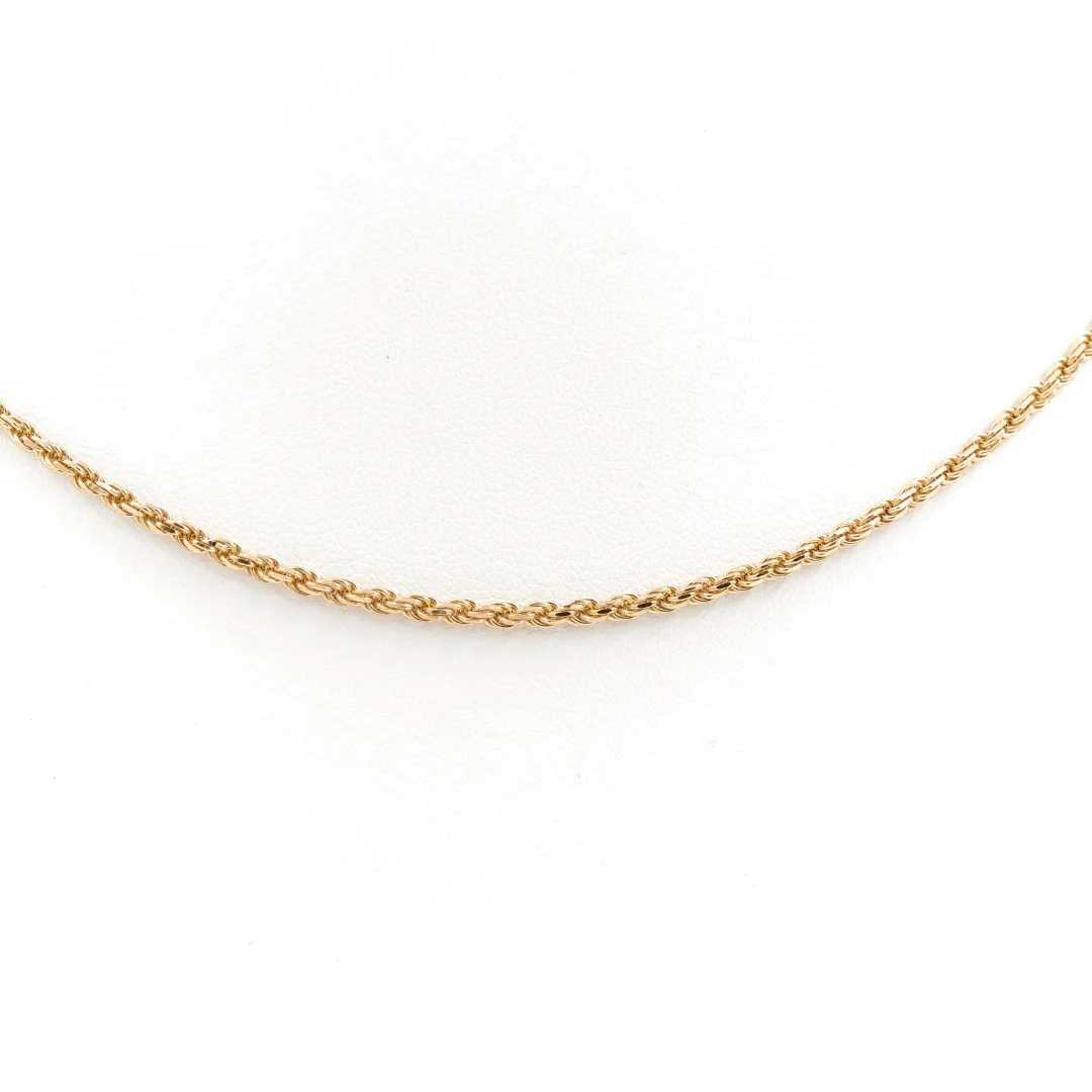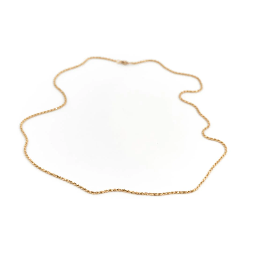 Collier en or jaune 750 millièmes (18 carats), chaine maille torsadée, longeur : 61 cm, largeur : 0,22 cm, poids total : 11,22 g, poinçon tête d’aigle, excellent état.