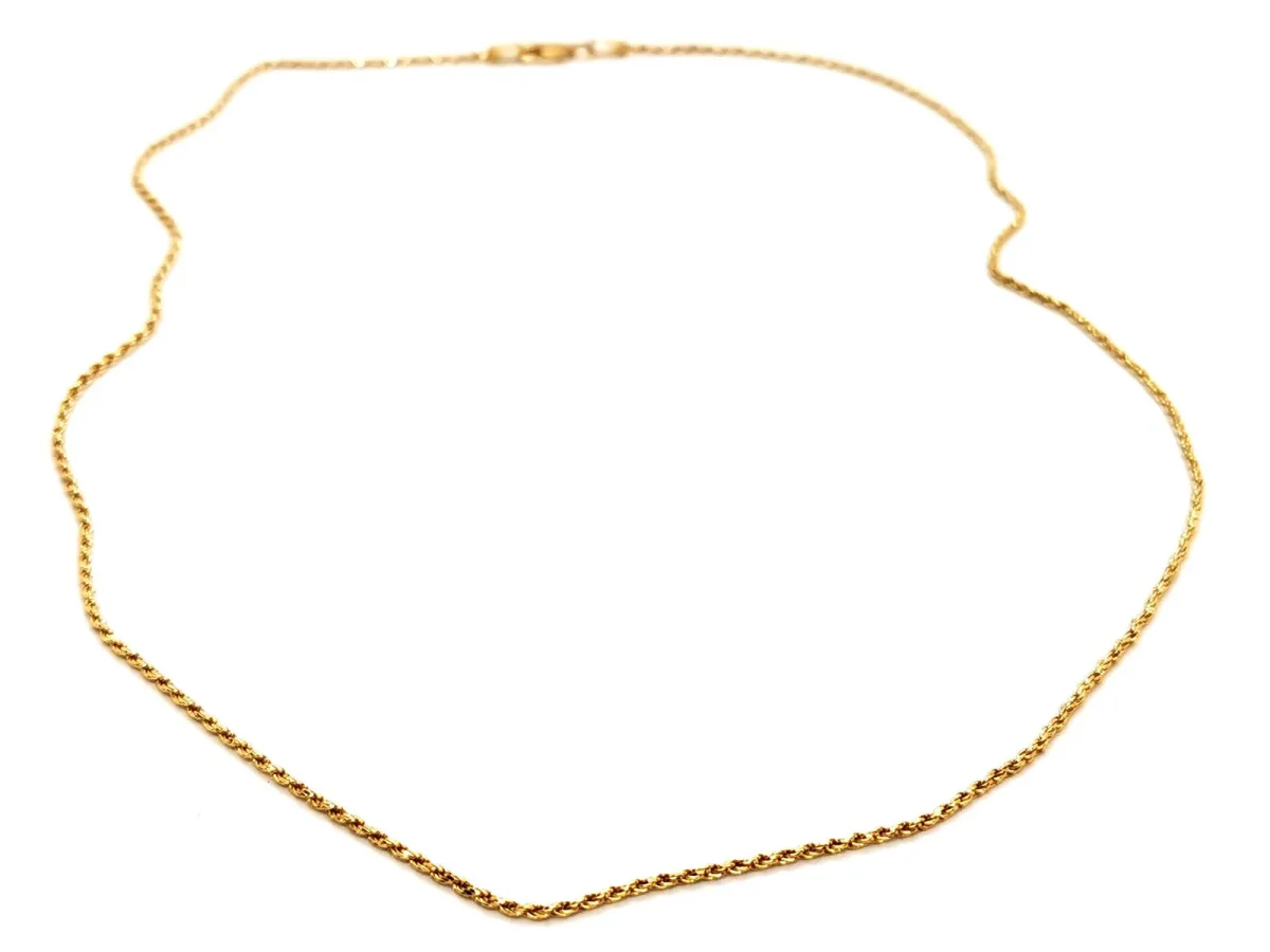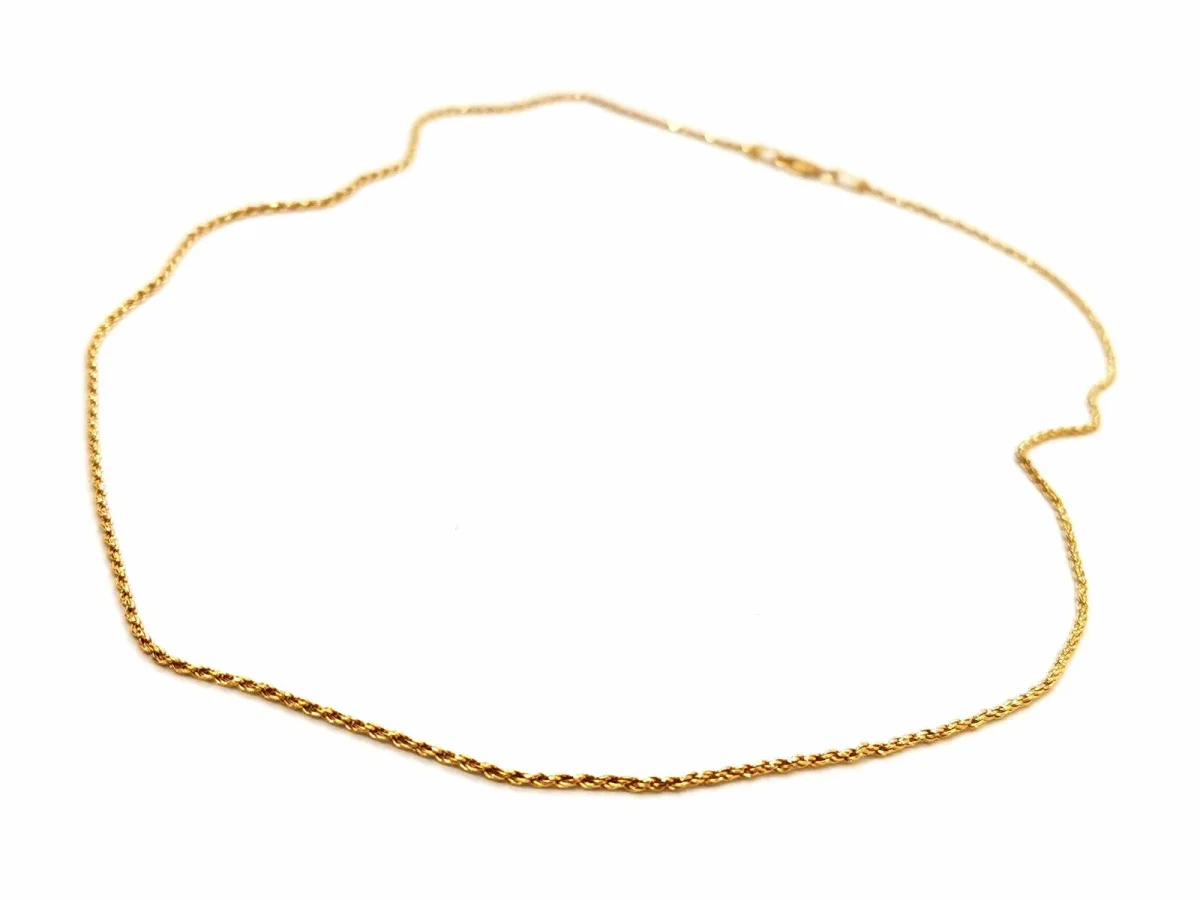 Collier chaîne, en or jaune 750 millièmes (18 carats), maille corde, longueur: 46 cm, largeur: 0,08 cm, poids total: 4,64g, poinçon Hibou, excellent état.
