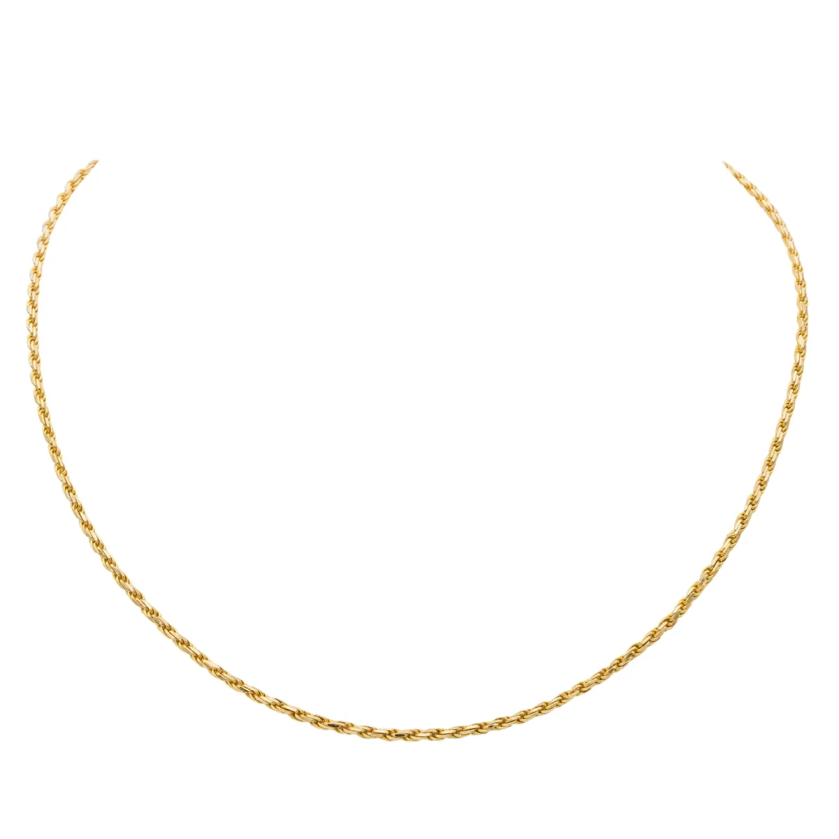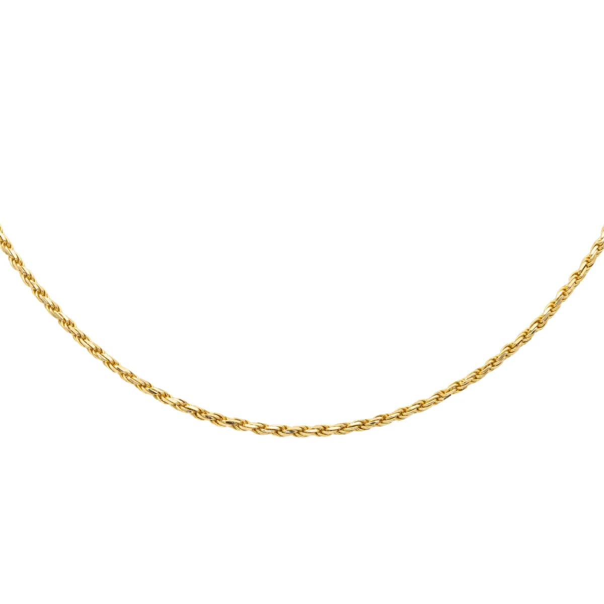 Collier chaîne, en or jaune 750 millièmes (18 carats), maille corde, longueur: 44 cm, largeur: 0,15 cm, poids total: 11,04g, poinçon Hibou, excellent état.