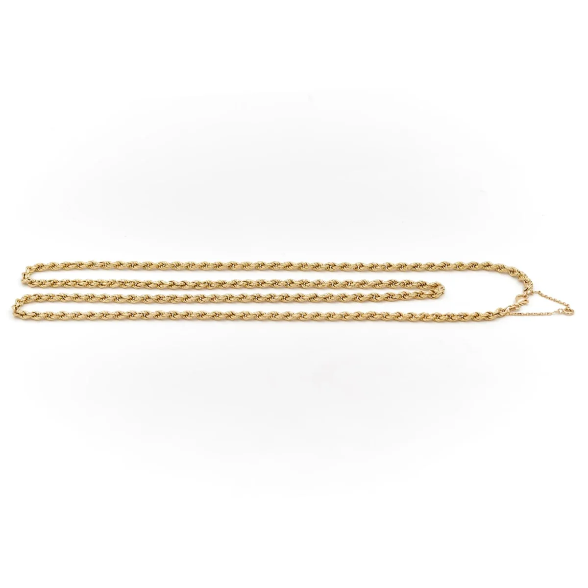 Collier en or jaune 750 millièmes (18 carats), sautoir maille corde, fermoir à ressort, chaîne de sécurité, longueur : 94 cm, largeur : 0,22, poids total 30,54 g, Poinçon hibou, excellent état