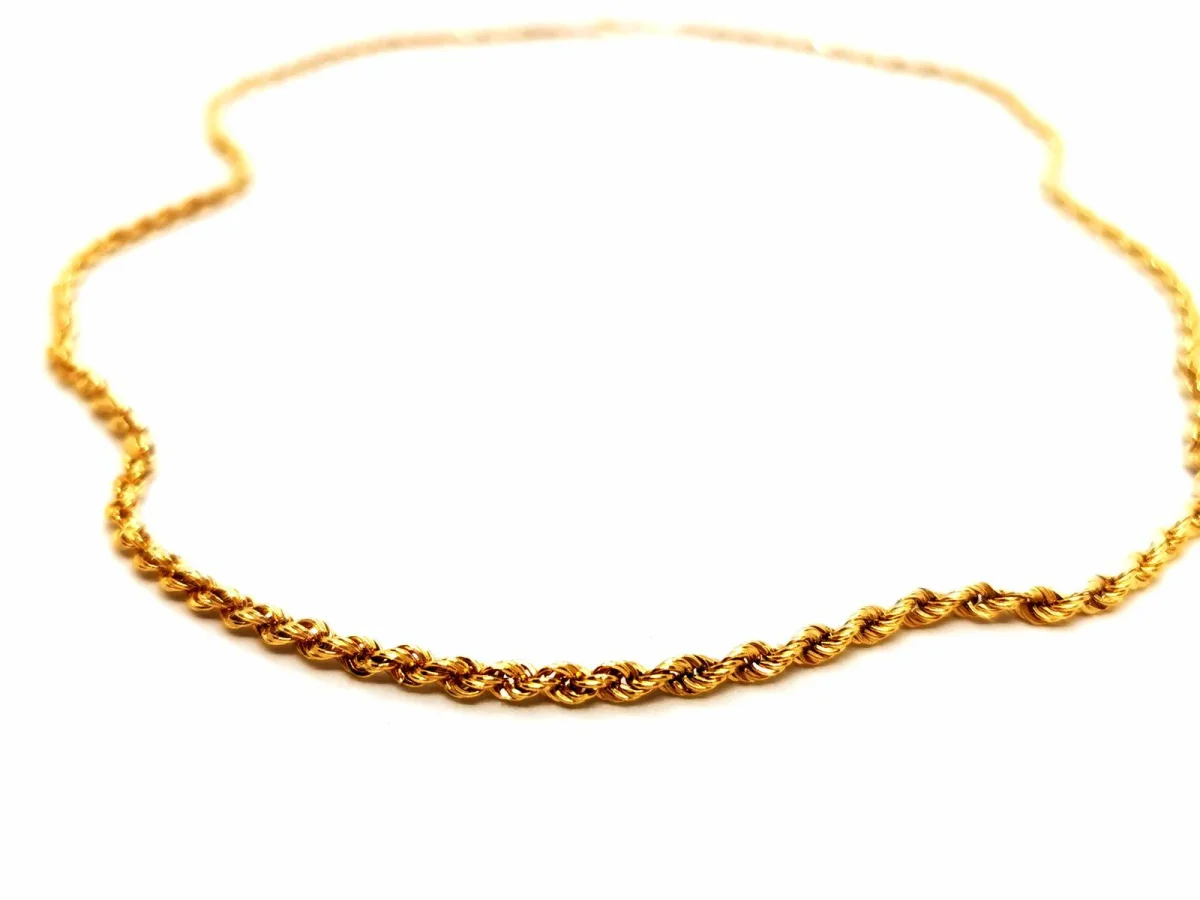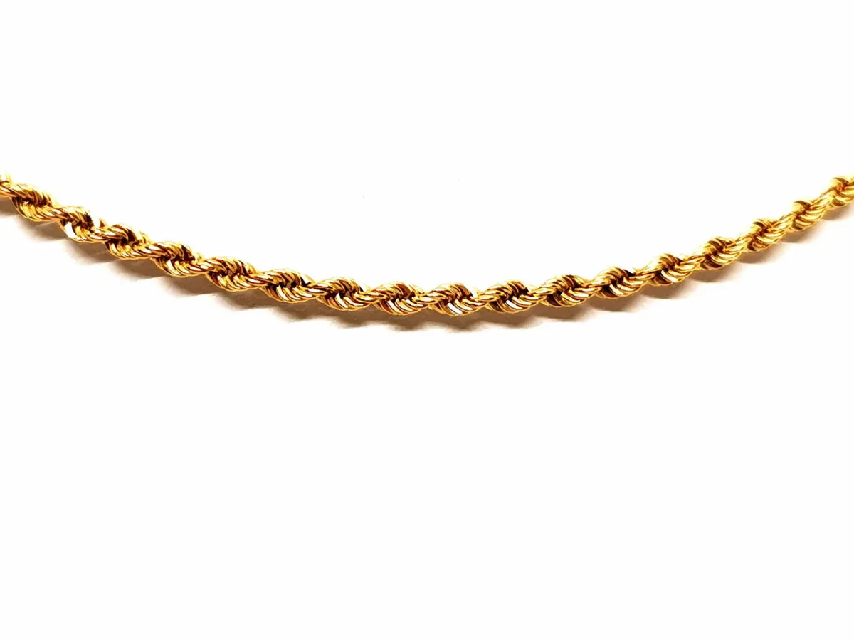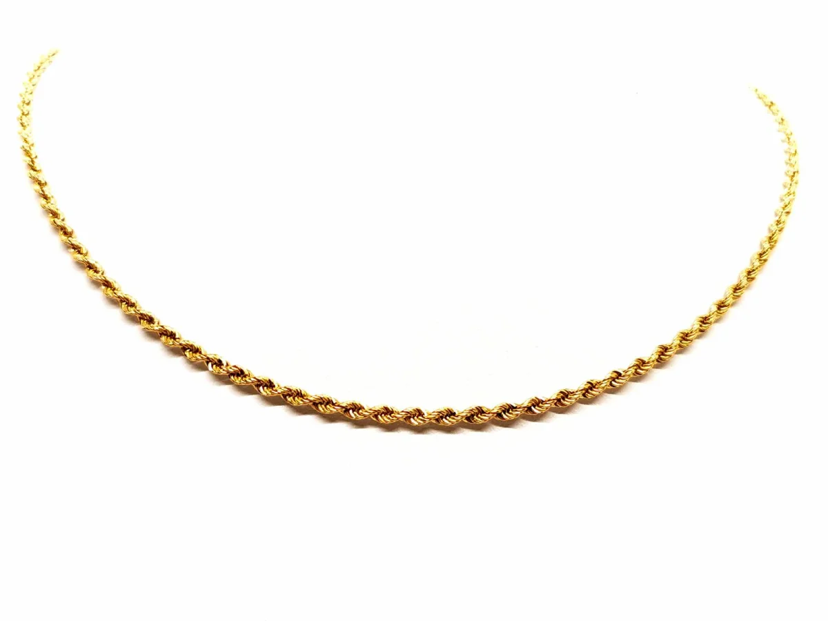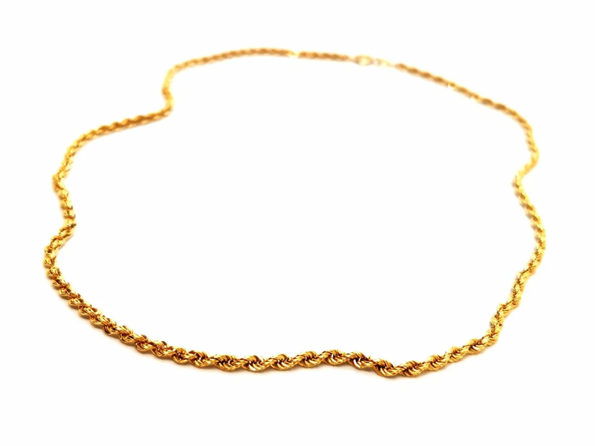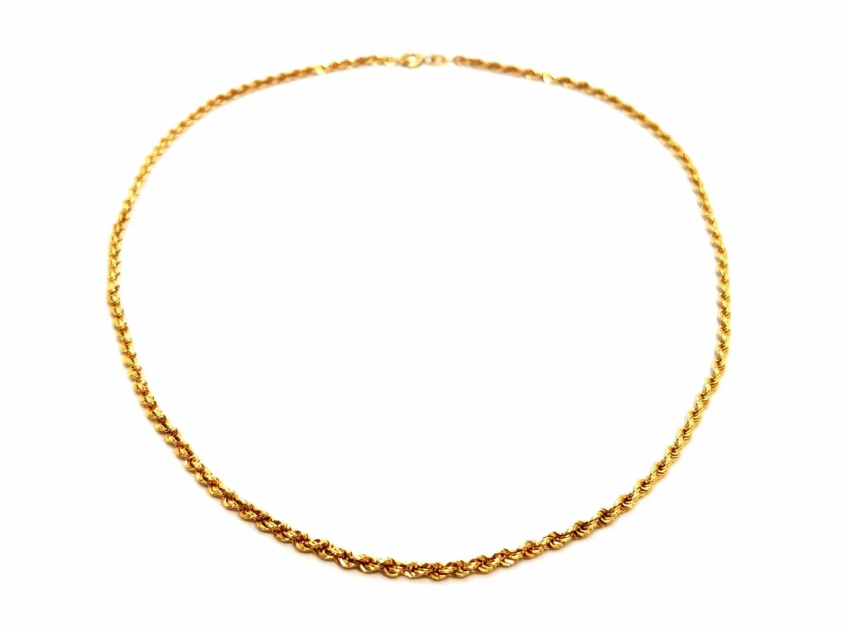Collier maille corde en or jaune 750 millièmes (18 carats), longueur: 42,5 cm, largeur: 0,21 cm, poids: 3,56 g, poinçon hibou, excellent état