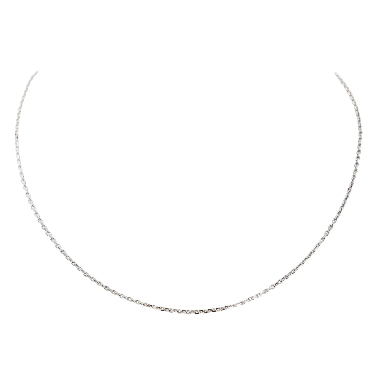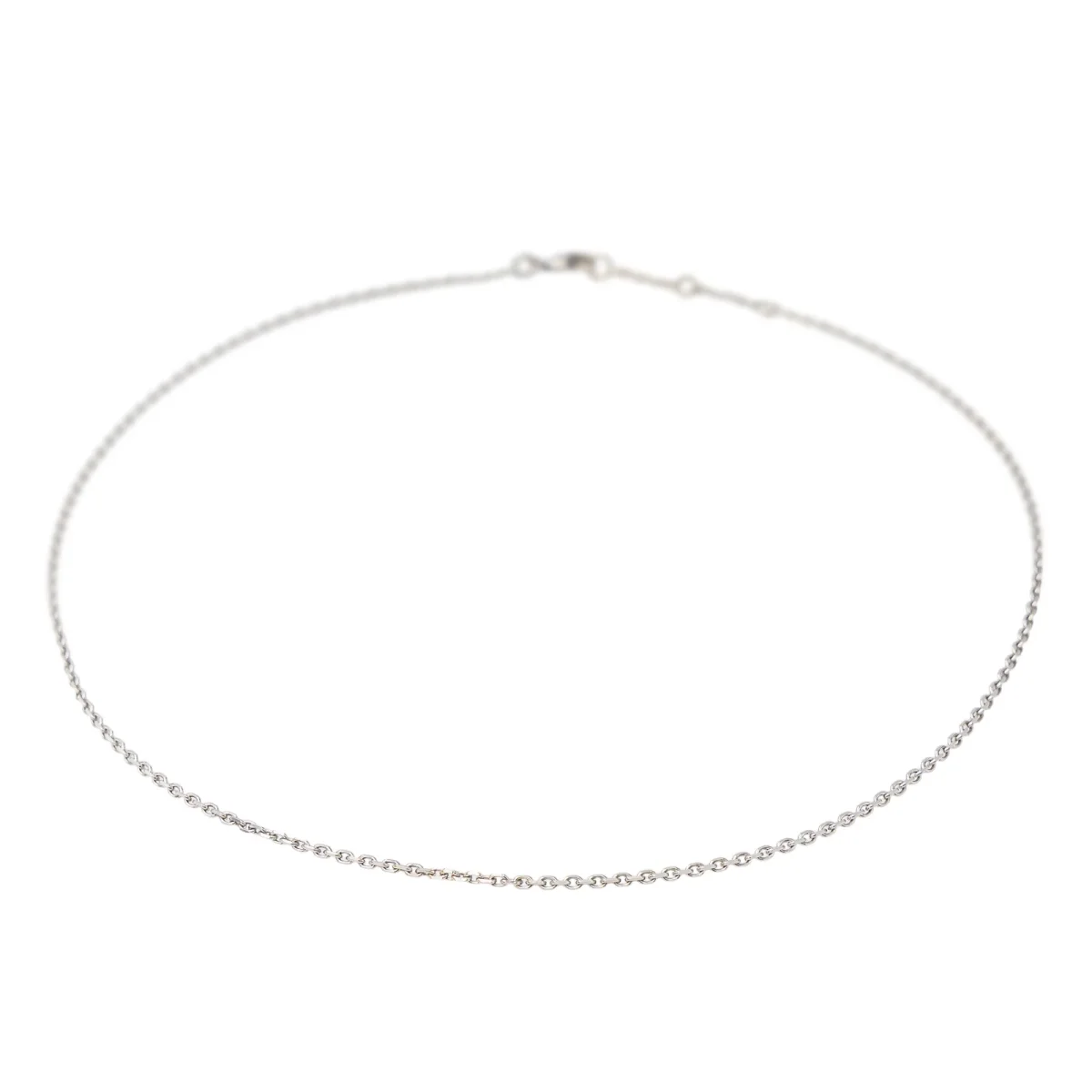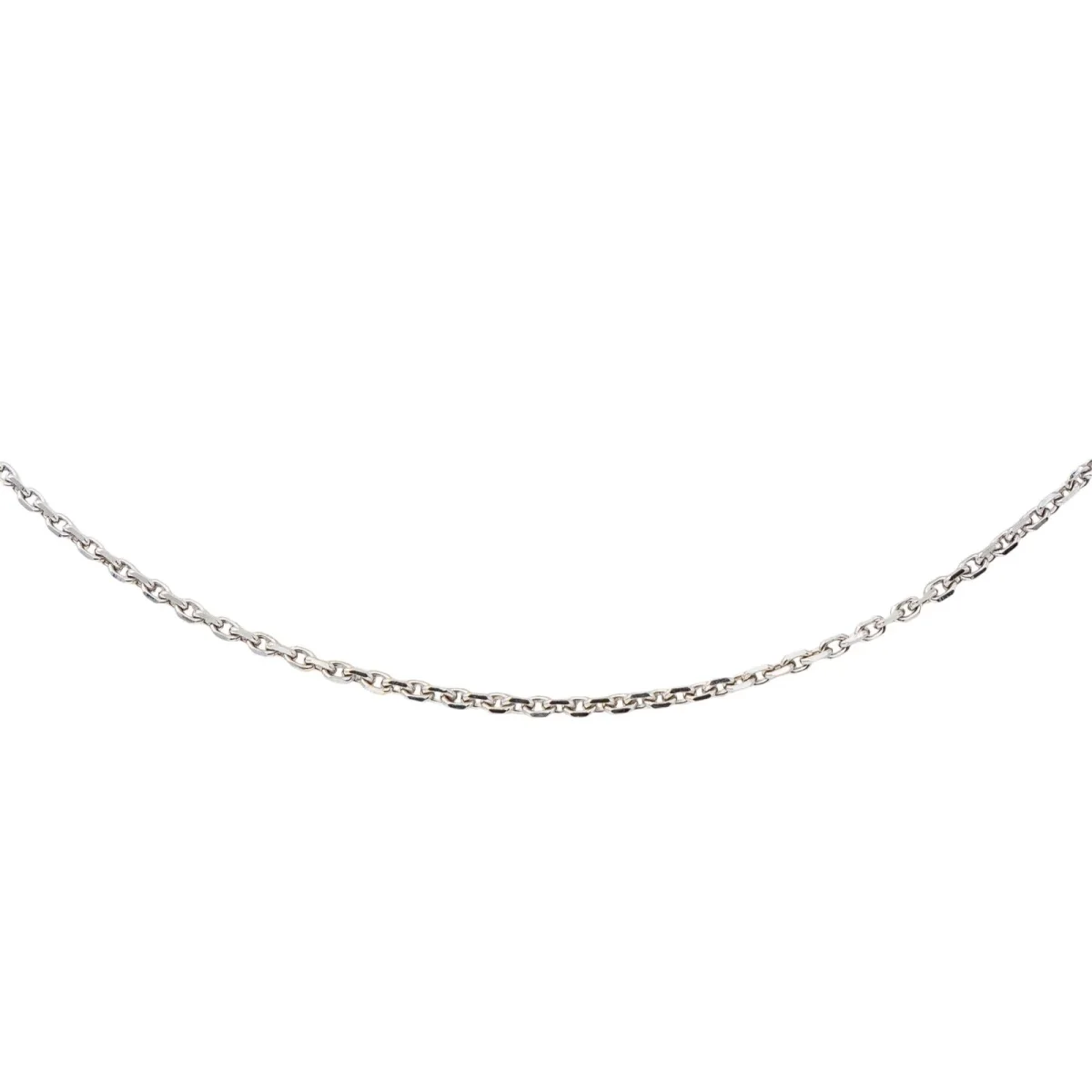 Chaine en or blanc 750 millièmes (18 carats), maille forçat, longueur : 37 cm, épaisseur : 0,14 cm, poids total : 3,39 g, poinçon hibou, excellent état