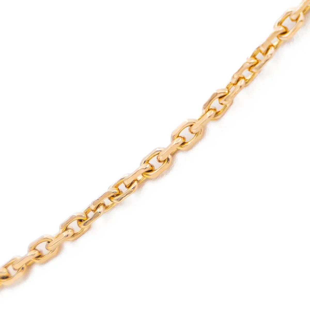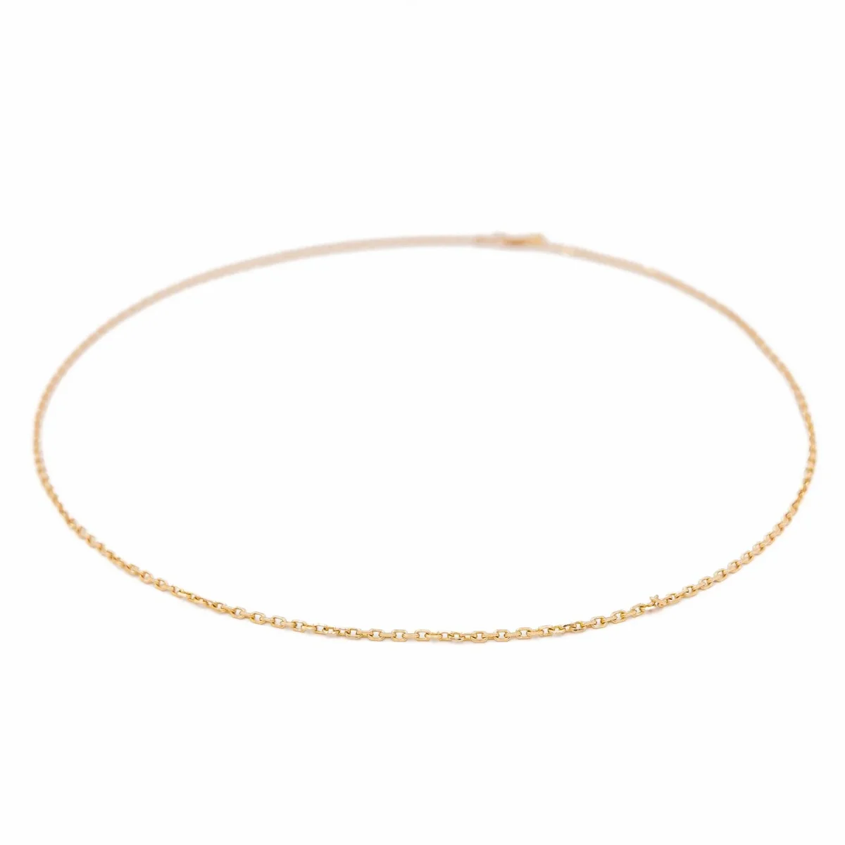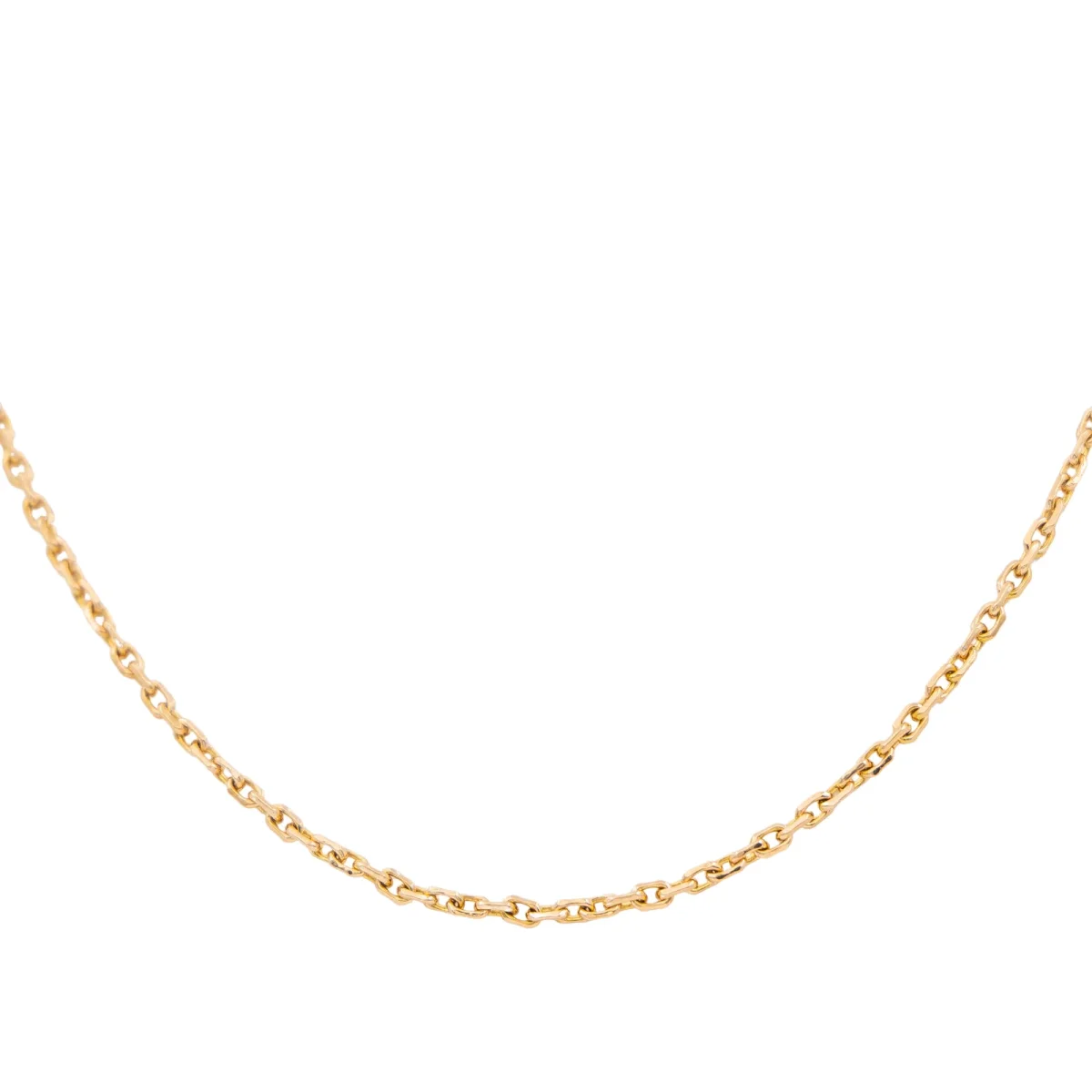 Chaine en or jaune 750 millièmes (18 carats), maille forçat, chainette de sécurité, longueur: 61,0 cm, largeur: 0,23 cm, épaisseur: 0,23 cm, poids total: 14,29 g, poinçon tête d’aigle, excellent état