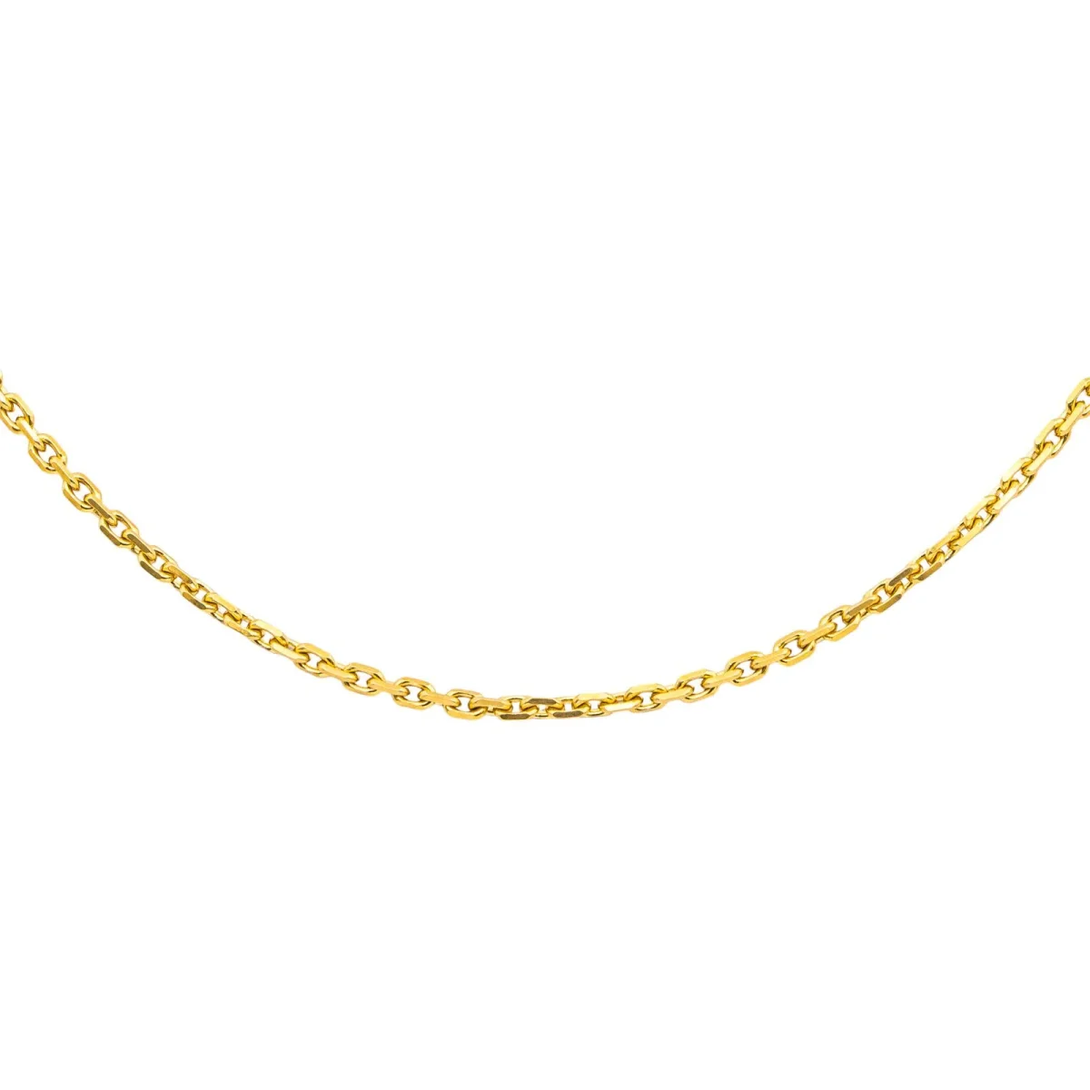 Chaîne en or jaune 750 millièmes (18 carats), maille forçat, longueur : 46,50 cm, largeur : 0,23 cm, poids total : 10,58 g, poinçon tête d’aigle, excellent état