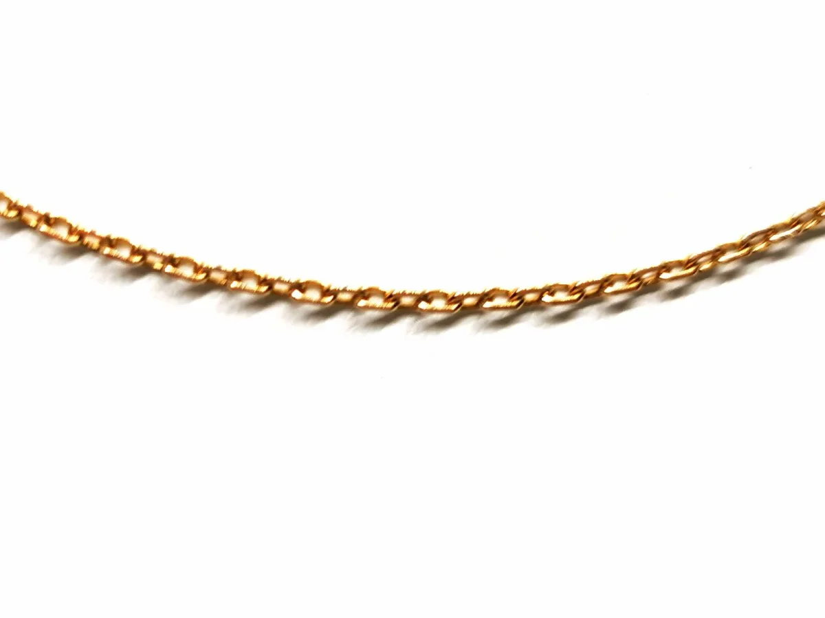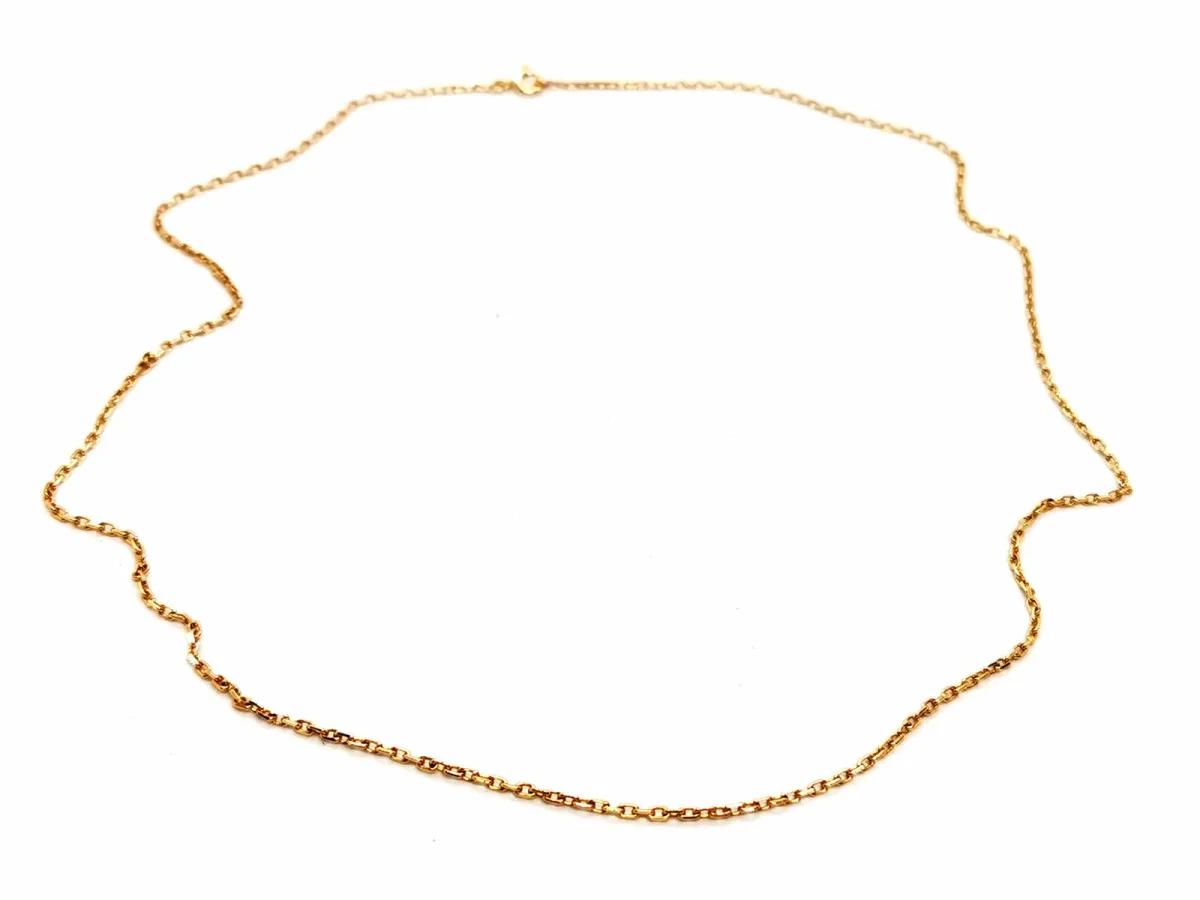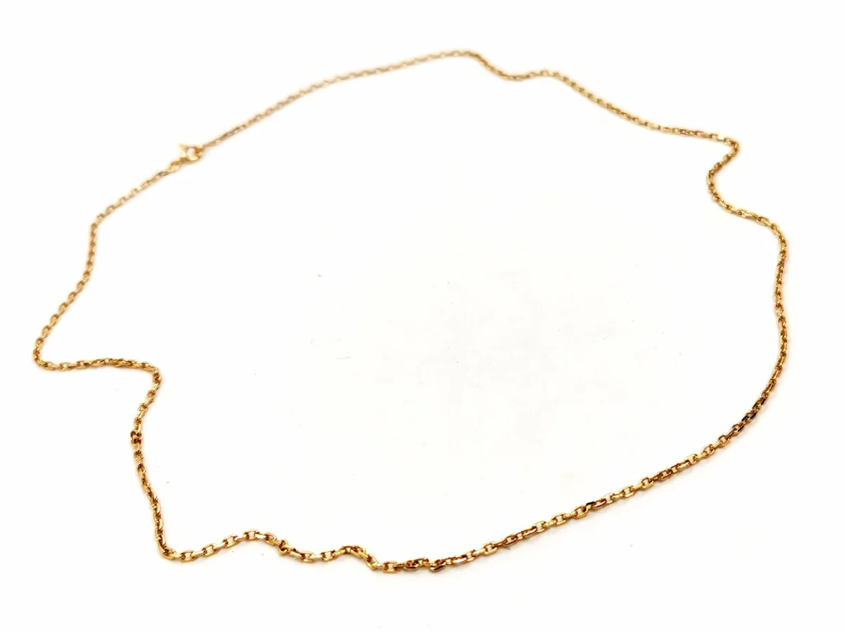 Chaine en or jaune 750 millièmes (18 carats), maille forçat, longueur: 48 cm, largeur: 0,15 cm, poids total: 4,54 g, poinçon tête d’aigle, excellent état