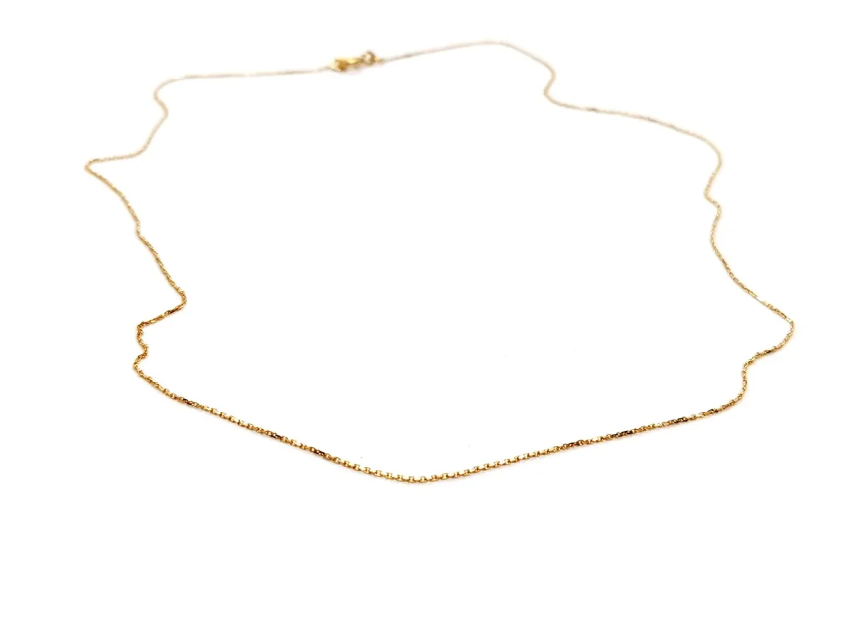 Chaîne en or jaune 750 millièmes (18 carats) testé, maille forçat, longueur: 42 cm, largeur: 0,07 cm, poids total: 1,16 g, excellent état.