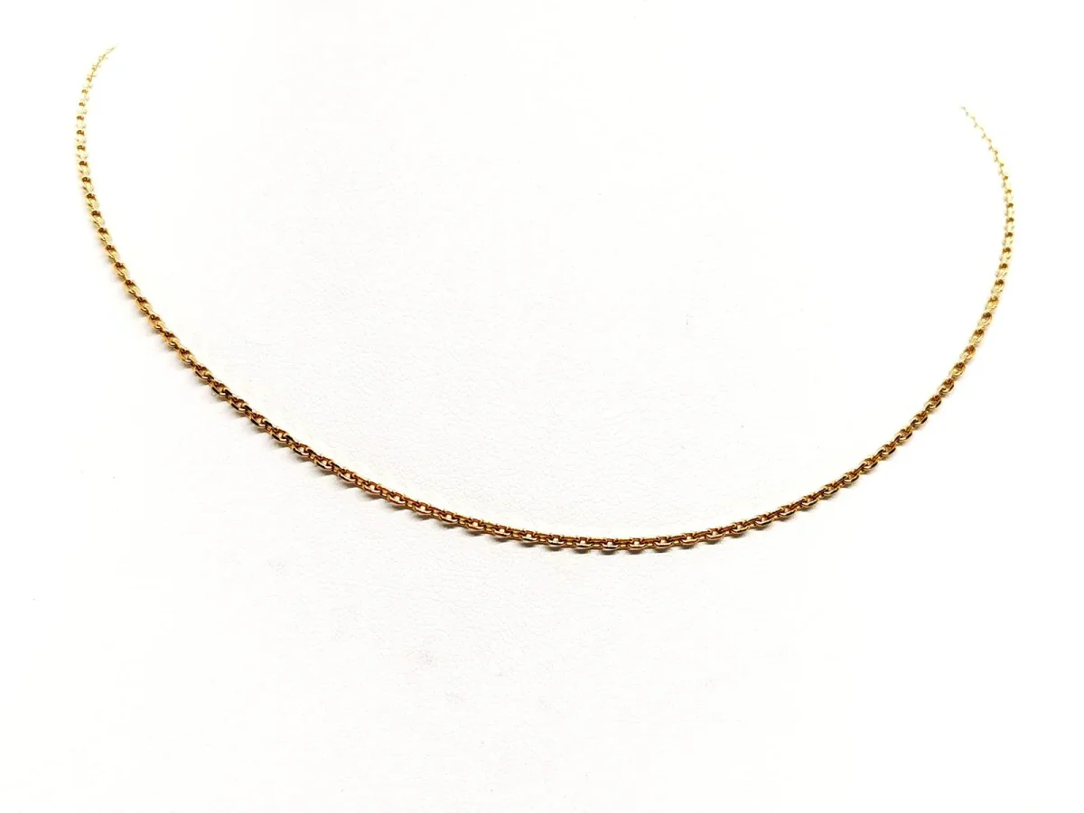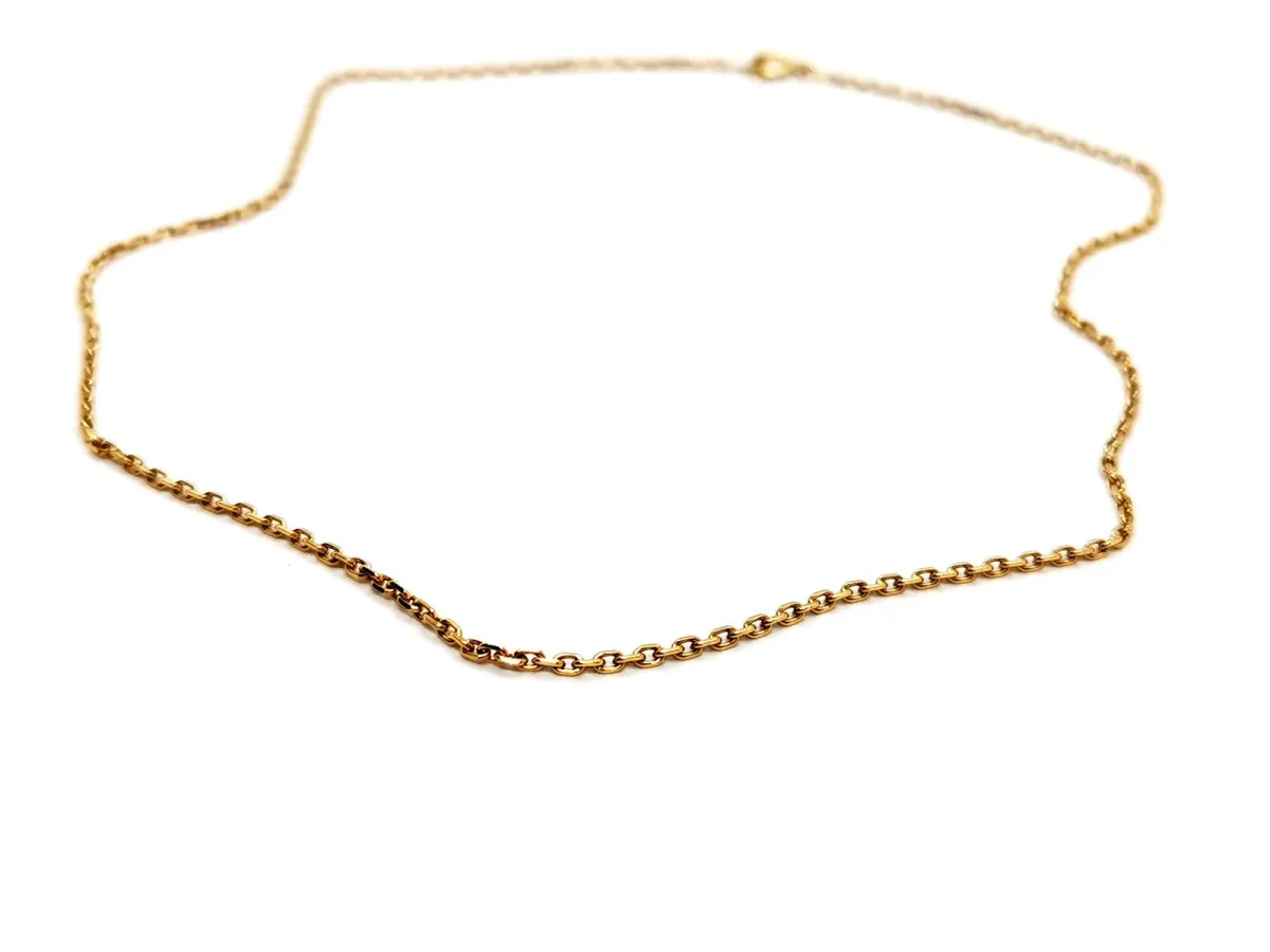 Chaîne maille forçat, en or jaune 750 millièmes (18 carats), longueur: 40 cm, largeur: 0,16 cm, poids total: 4,73 g, poinçon tête d’aigle, excellent état.