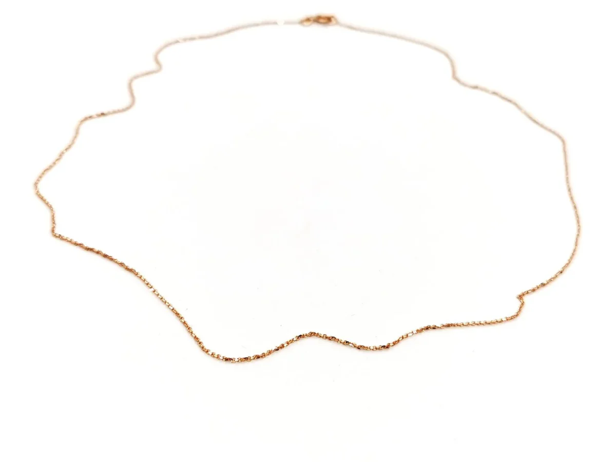 Collier chaîne, en or rose 750 millièmes (18 carats) testé, maille forçat, longueur: 40 cm, largeur: 0,08 cm, poids total: 1,18 g, état neuf