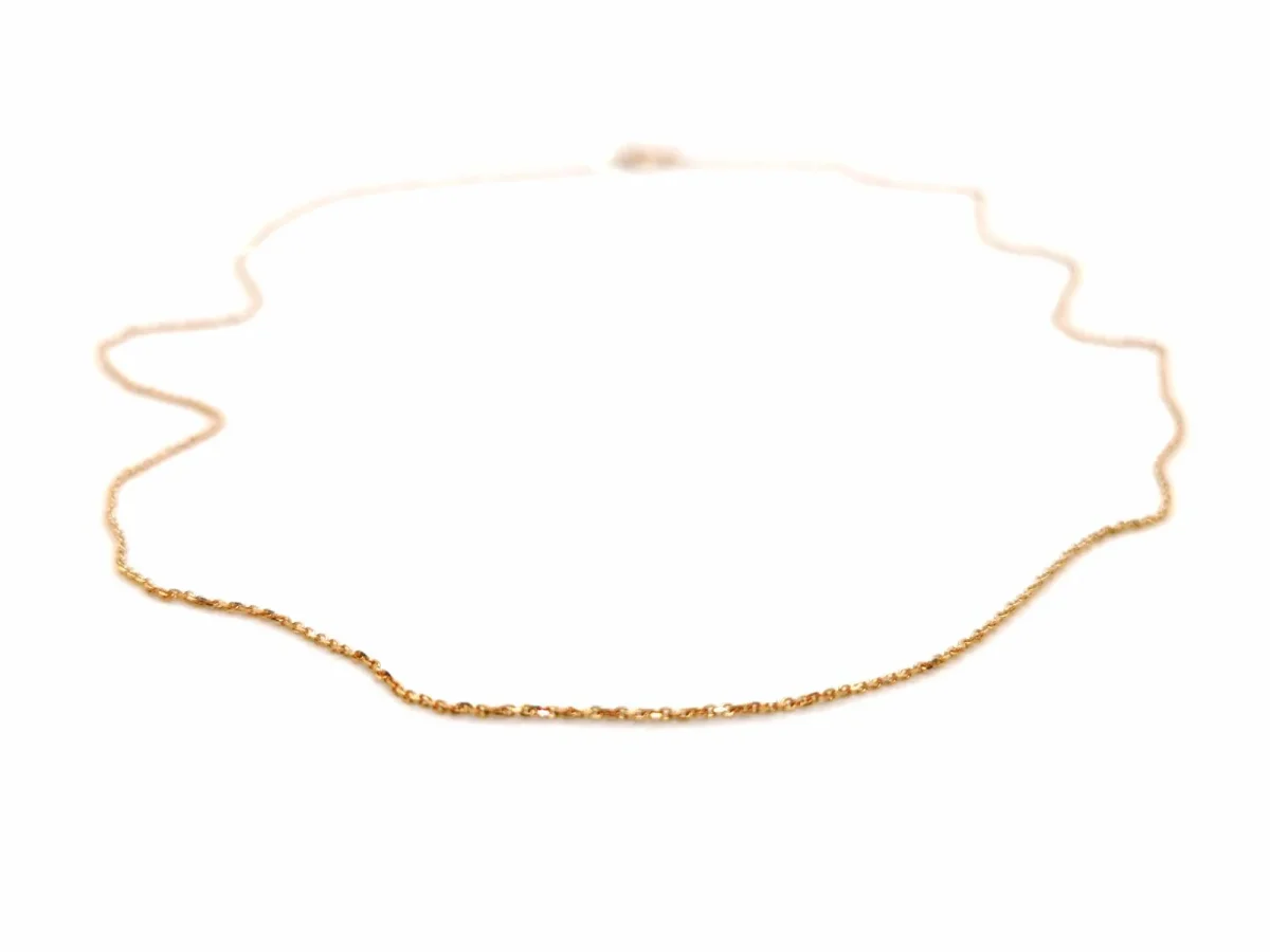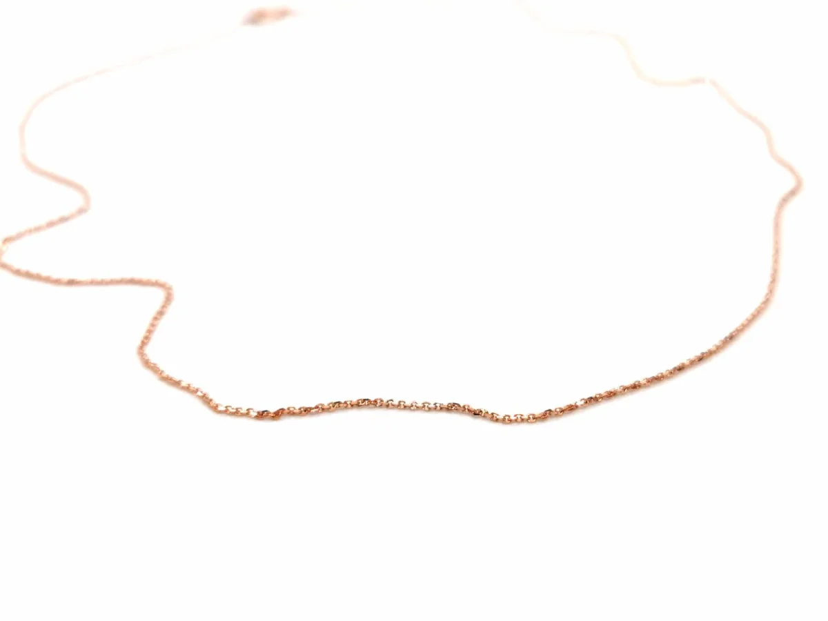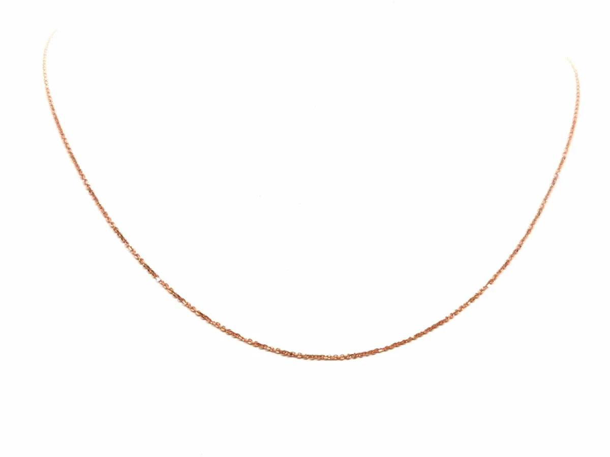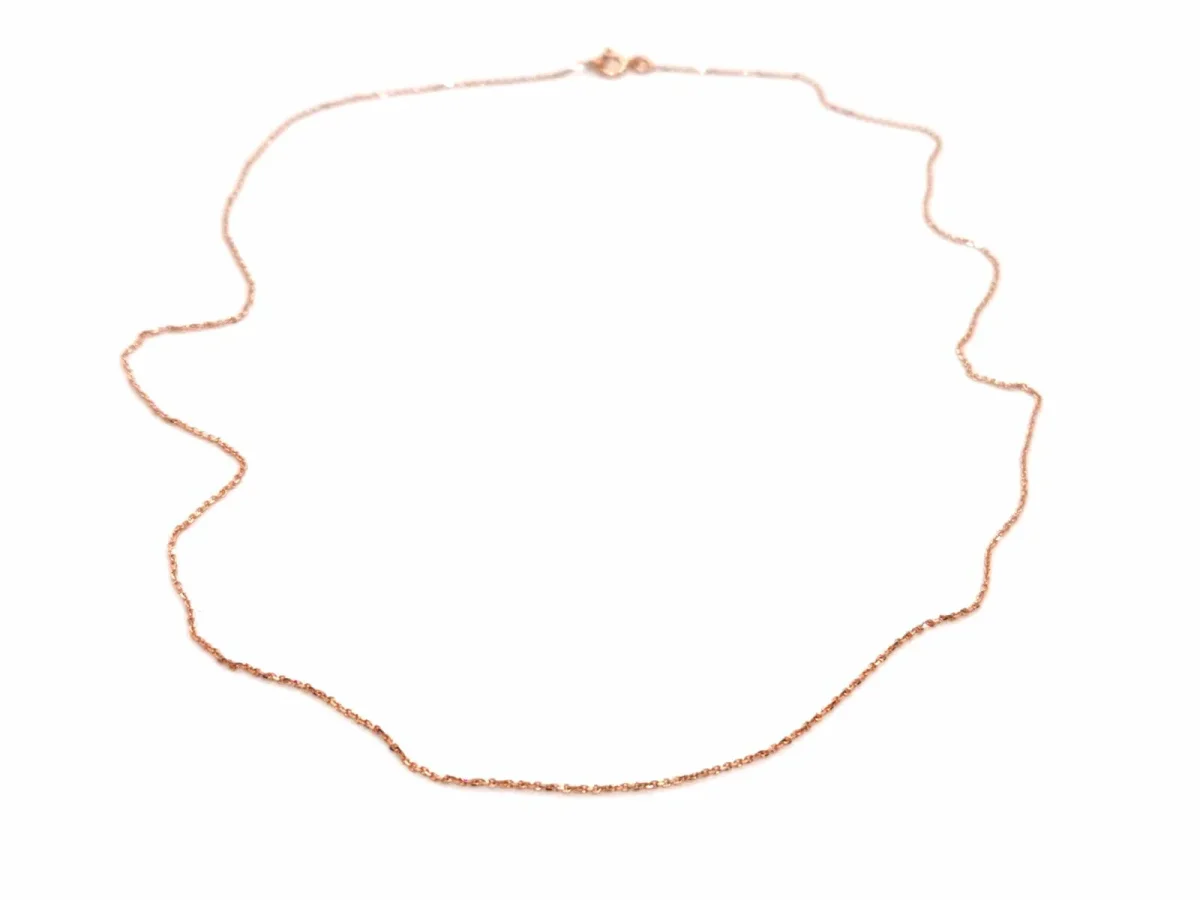 Collier chaîne en or rose 750 millièmes (18 carats) testé, maille forçat, longueur: 46 cm, largeur: 0,06 cm,poids total: 1,31 g, état neuf.