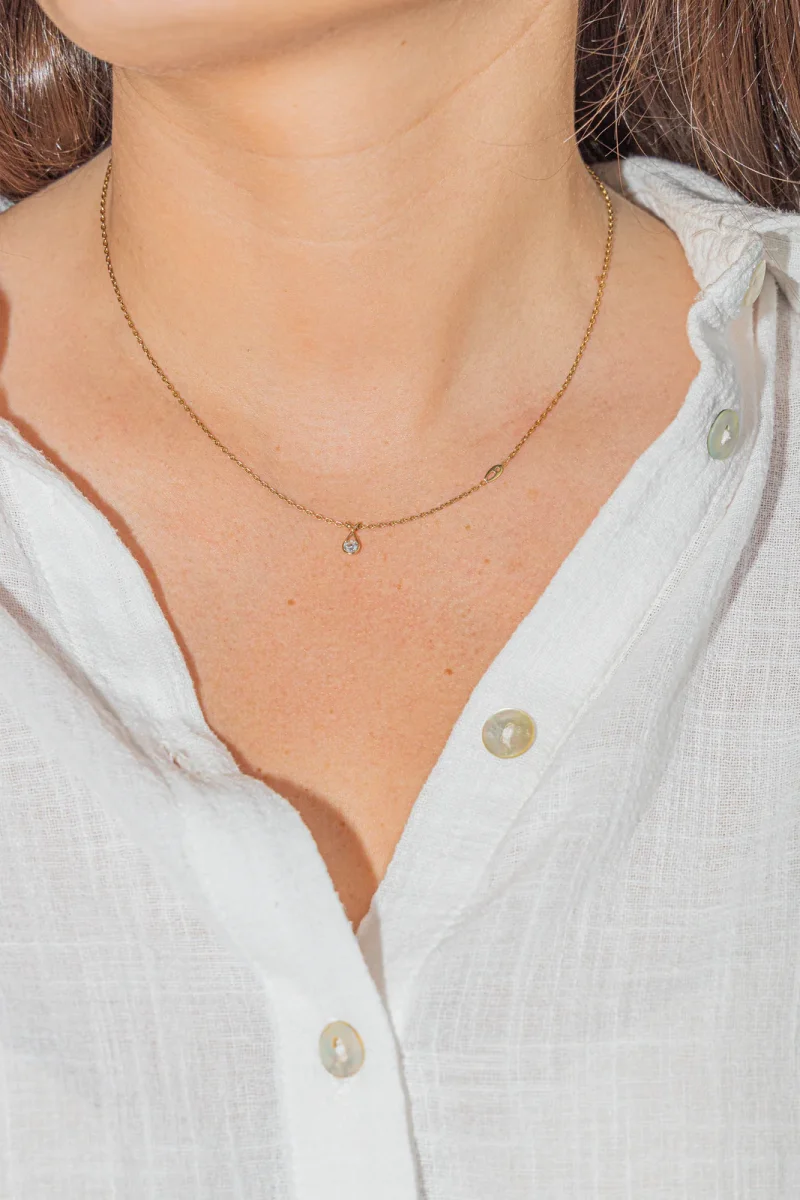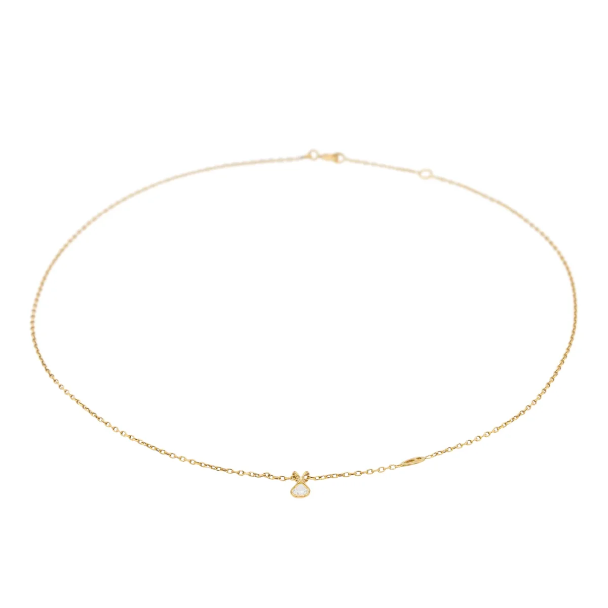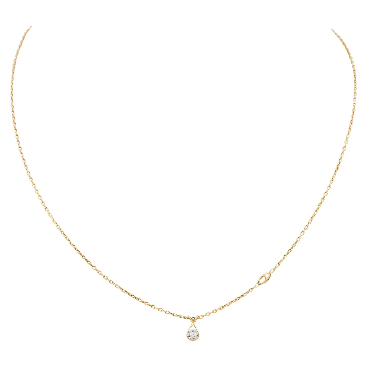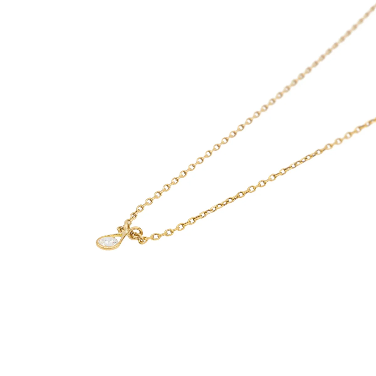 Collier en or jaune 750 millièmes (18 carats), serti d’un diamant taille brillant environ G-VS, environ 0,18 ct, maille forçat de longueur 42,50 cm, largeur du motif 0,40 cm, poids total : 2,54 g, poinçon tête d’aigle excellent état