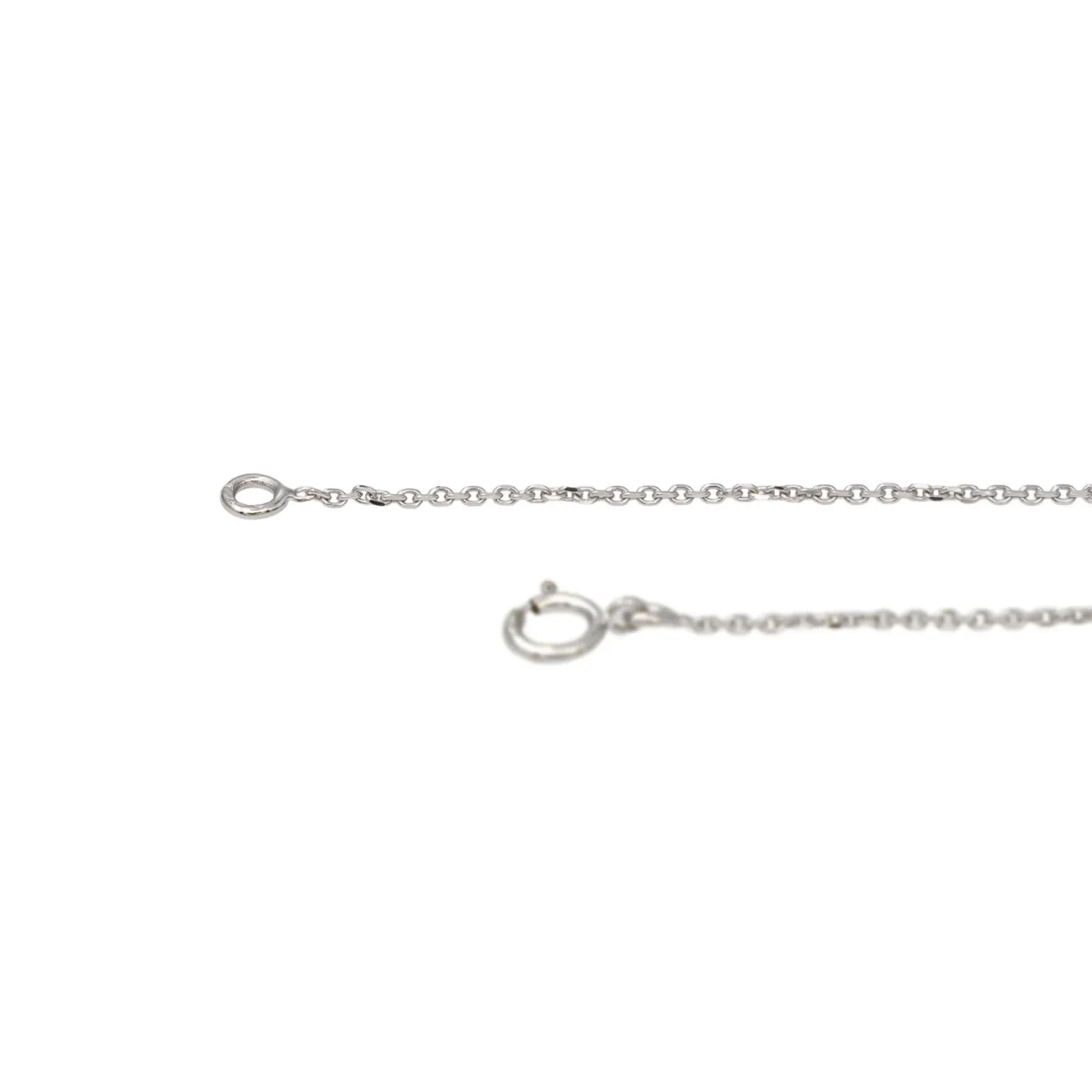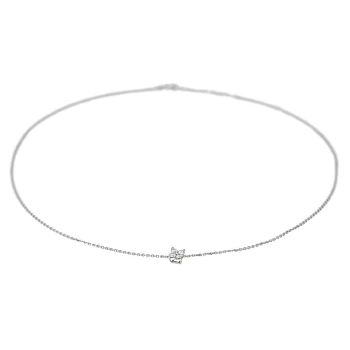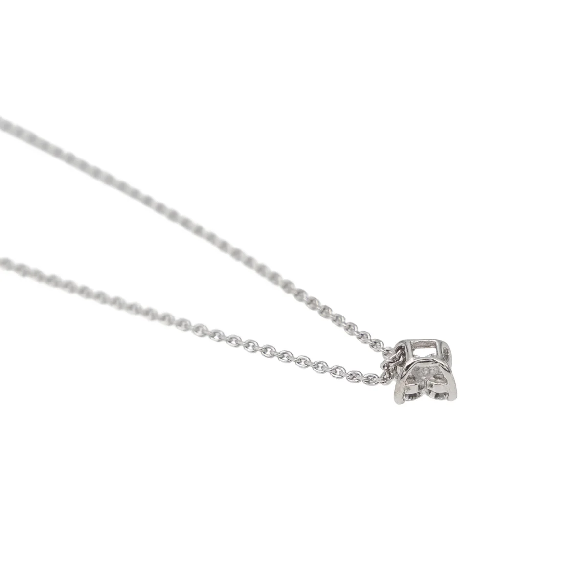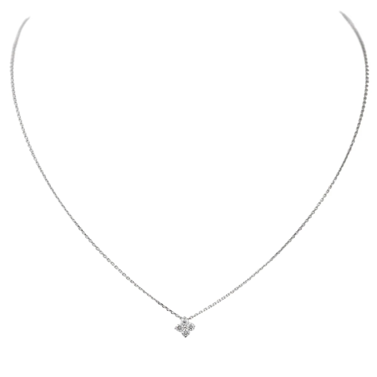 Collier en or blanc 750 millièmes (18 carats), maille forçat avec un motif serti de 4 diamants taille brillant estimé G/VS, environ 0,06 ct chacun, Poids total estimé des diamants: 0,24 ct, tour de cou: 42,5 cm, Dimensions du motif: 0,72 x 0,72 cm, Poids total: 2,57 g, Poinçon tête d’aigle, Excellent état