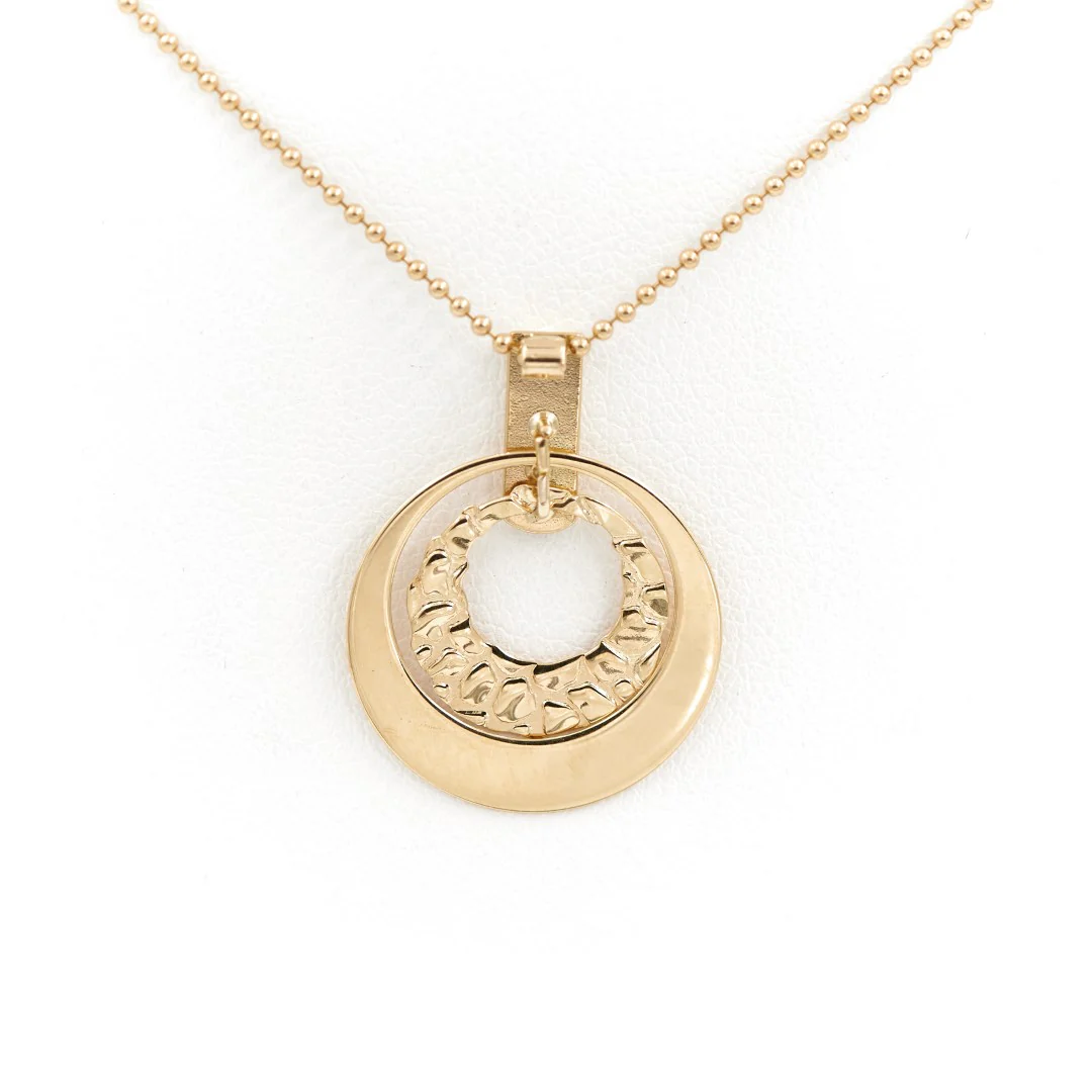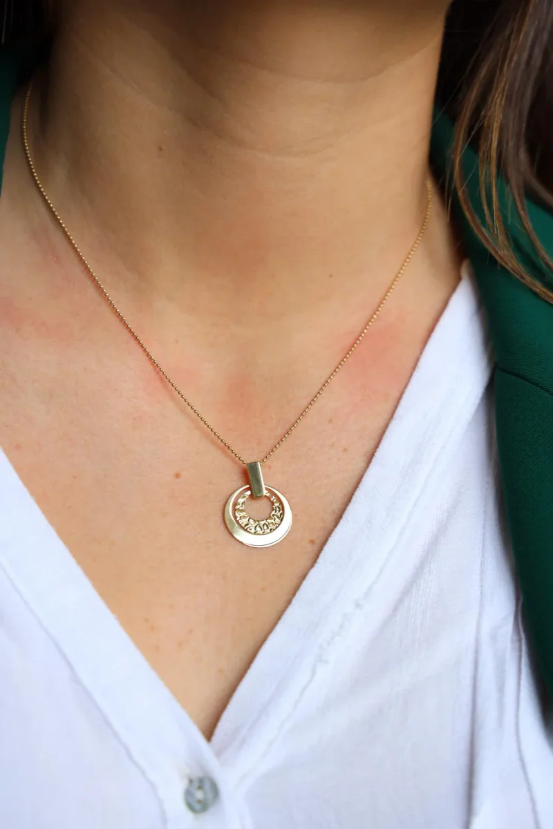 Collier en or jaune 750 millièmes (18 carats), maille boule et pendentif constitué de 2 cercles,