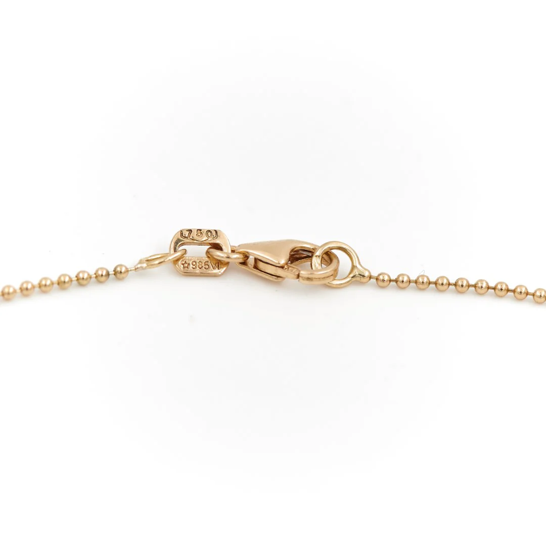 Collier en or jaune 750 millièmes (18 carats), maille boule et pendentif constitué de 2 cercles, longeur de la chaine : 42 cm, longueur et largeur du pendentif : 1,8 x 2,3 cm, poids total : 3,50 g, poinçon tête d’aigle, excellent état.