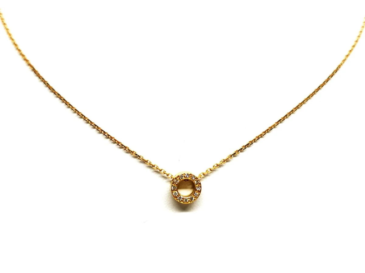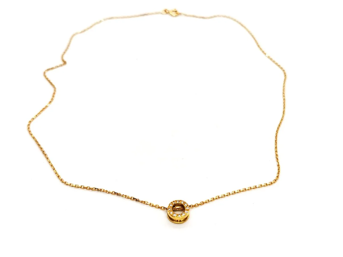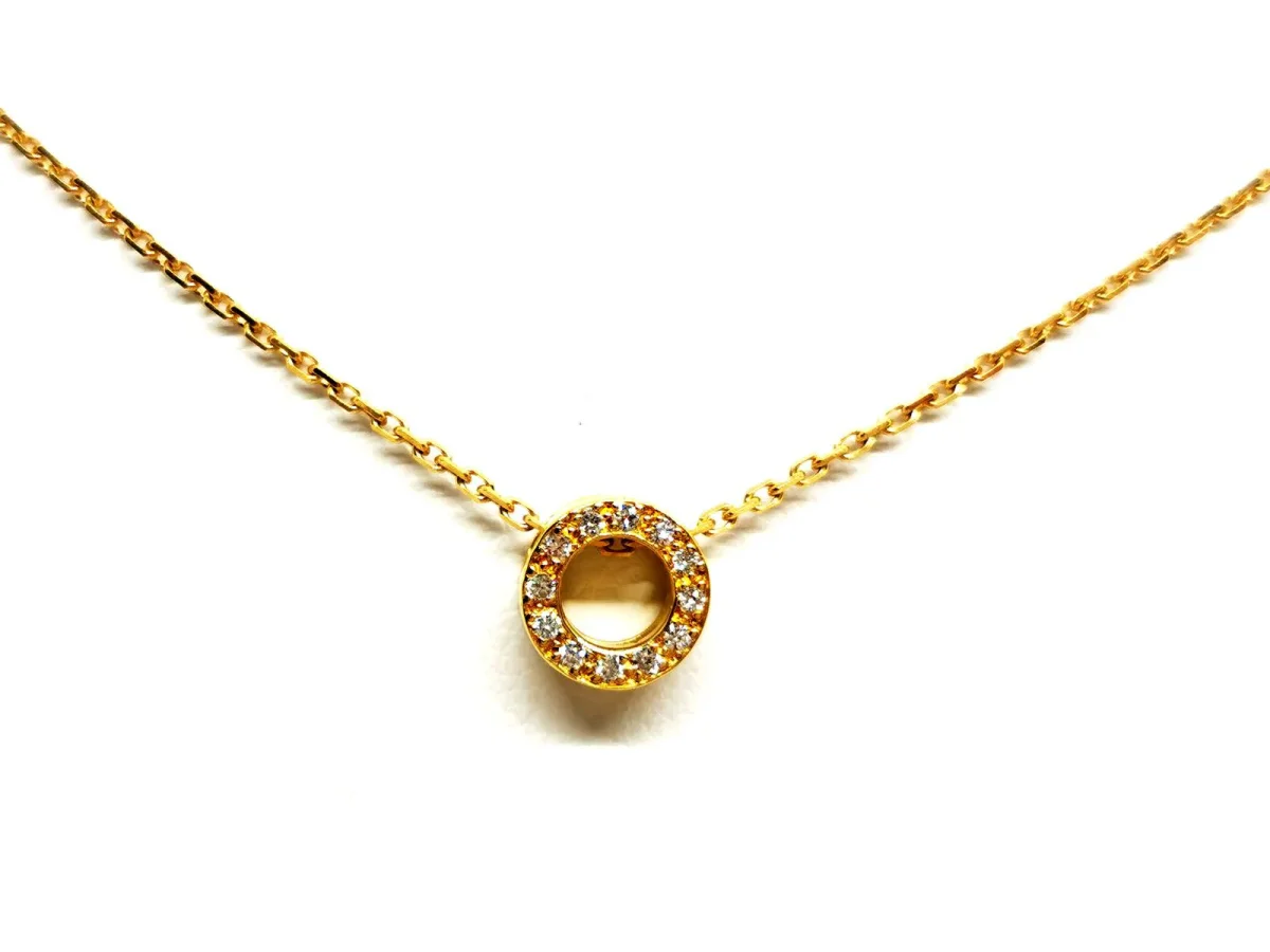 Chaine et pendentif serti de diamants, en or jaune 750 millièmes (18 carats), 12 diamants environ H-SI d’environ 0,005 ct chacun, poids total diamants: environ 0,06 ct, longueur de la chaine: 41 cm, épaisseur de la chaine: 0,09 cm, diamètre du pendentif: 0,74 cm, épaisseur du pendentif: 0,32 cm, poids total: 2,87 g, poinçon tête d’aigle, excellent état