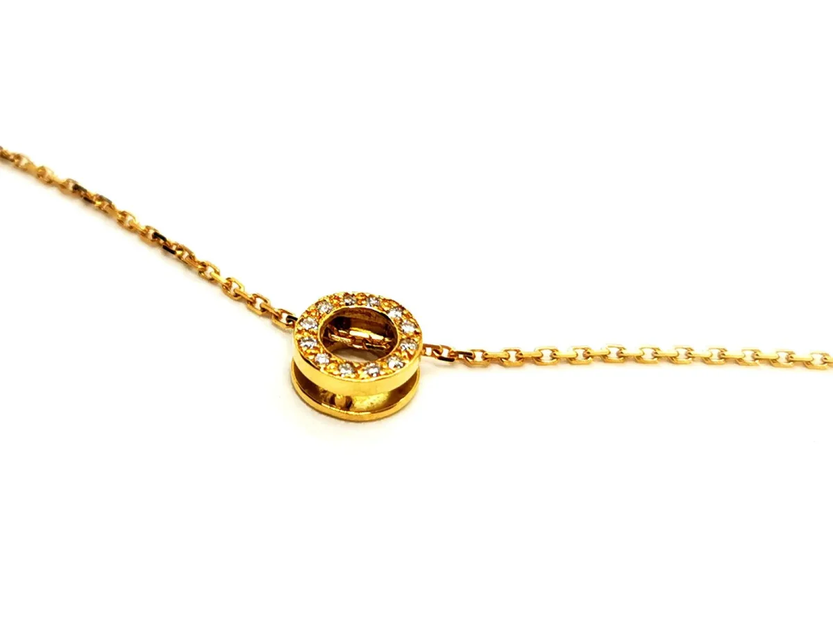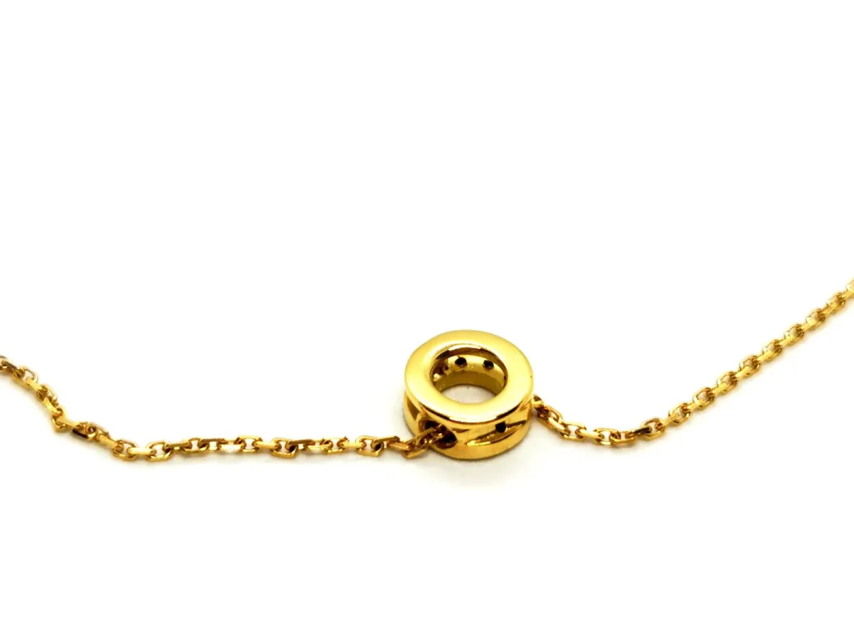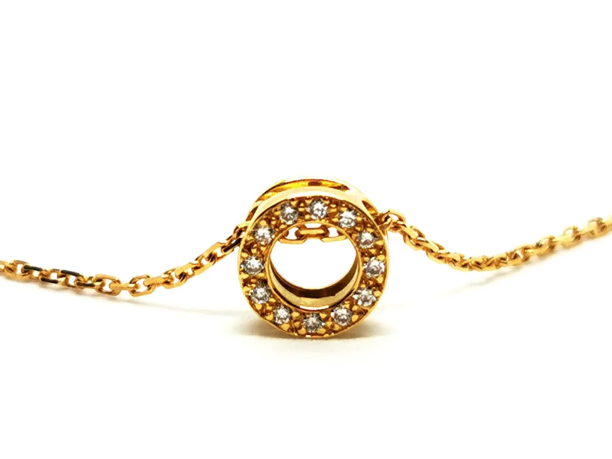 Chaine et pendentif serti de diamants, en or jaune 750 millièmes (18 carats), 12 diamants environ H-SI d’environ 0,005 ct chacun, poids total diamants: environ 0,06 ct, longueur de la chaine: 41 cm, épaisseur de la chaine: 0,09 cm, diamètre du pendentif: 0,74 cm, épaisseur du pendentif: 0,32 cm, poids total: 2,87 g, poinçon tête d’aigle, excellent état