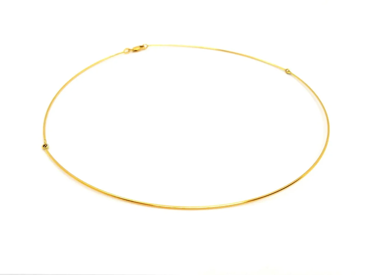 Collier rigide en or jaune 750 millièmes (18 carats), ras ce cou, longueur 39 cm, fil rond, largeur: 0,09 cm, poids total: 4,32 g, poinçon tête d’aigle, état neuf