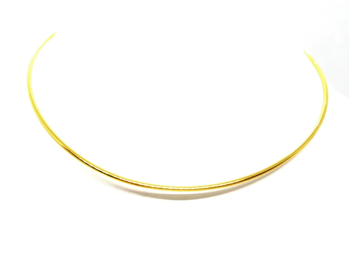 Collier cable rigide en or jaune 750 millièmes (18 carats), ras ce cou, longueur 43 cm, fil rond, largeur: 0,19 cm, poids total: 11,22 g, poinçon tête d’aigle, état neuf