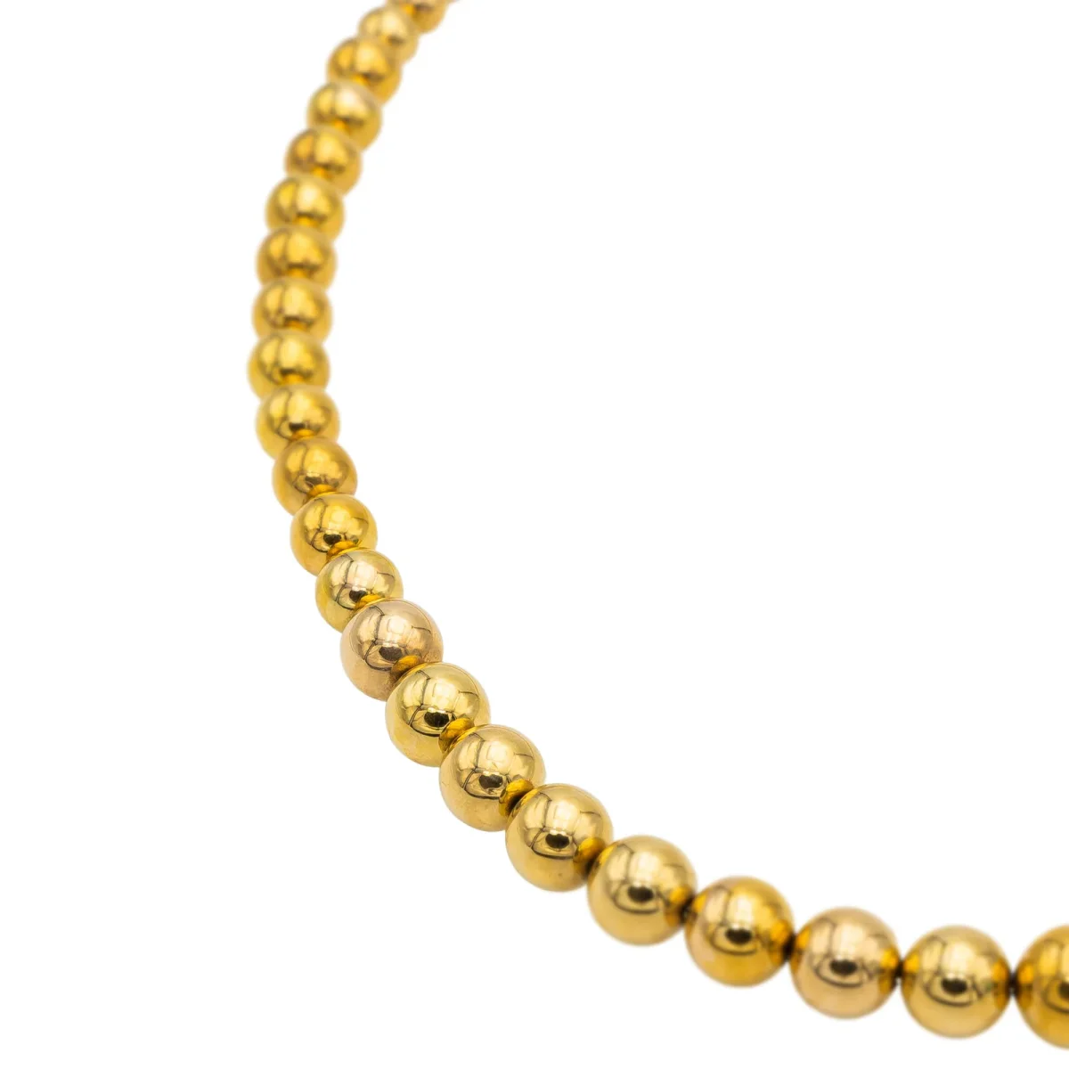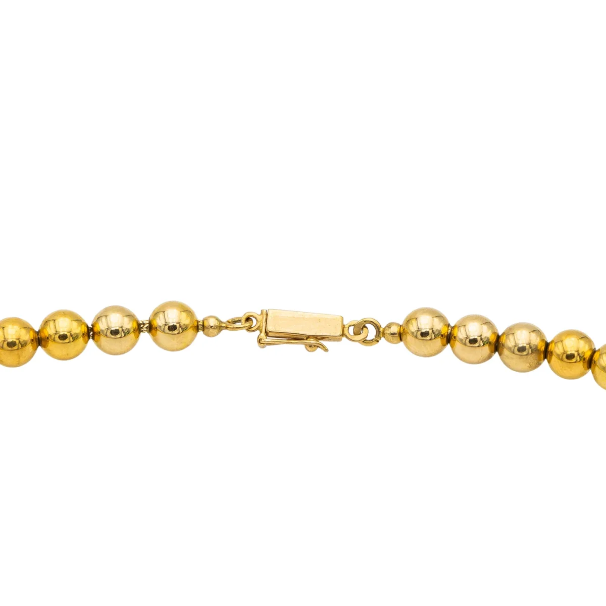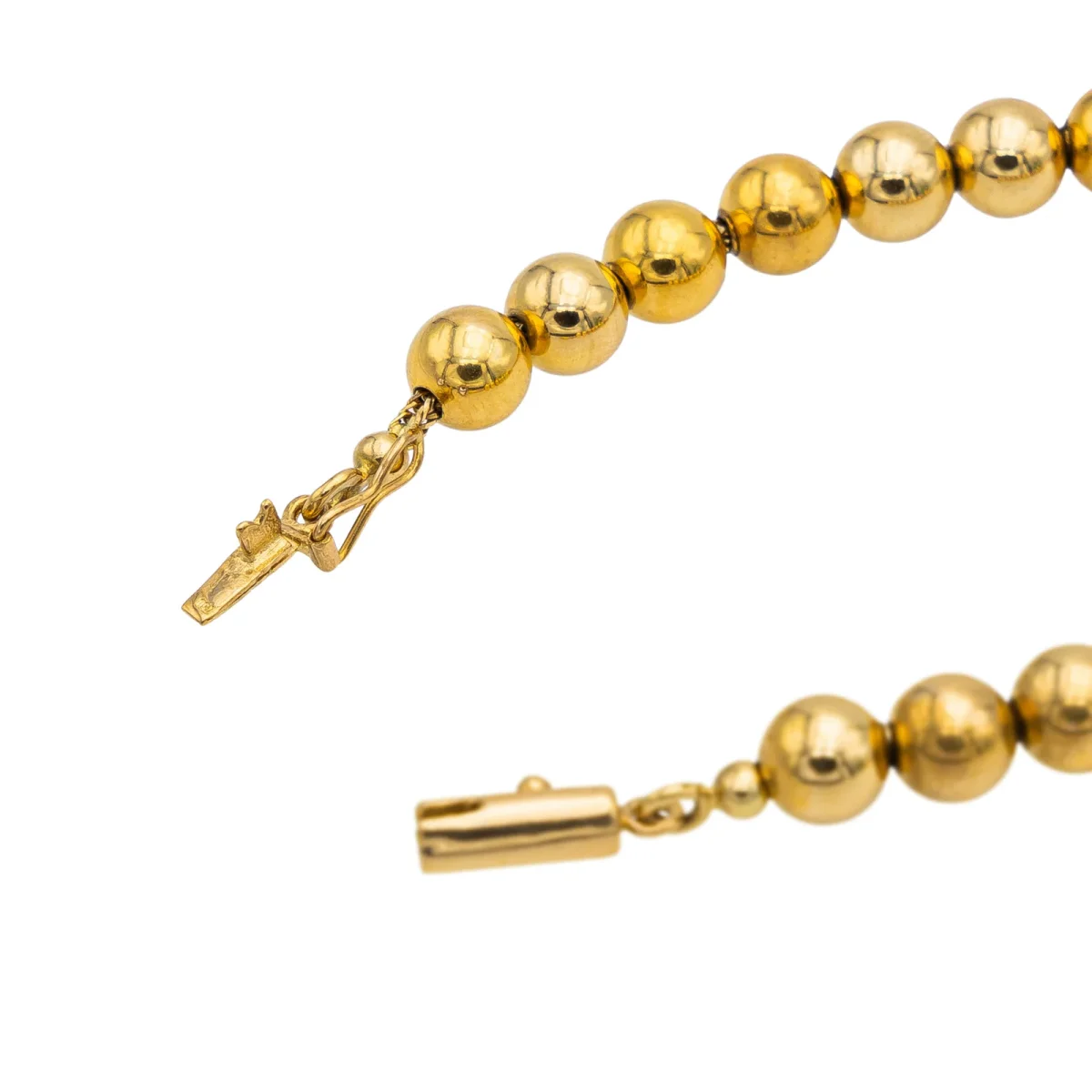 Collier sautoir boules, en or jaune 750 millièmes (18 carats), en chute, longueur: 82,00 cm, largeur max: 1,21 cm, margeur min: 0,53 cm, fermoir avec huit de sécurité, poids total: 46,46 g, poinçon tête d’aigle, excellent état