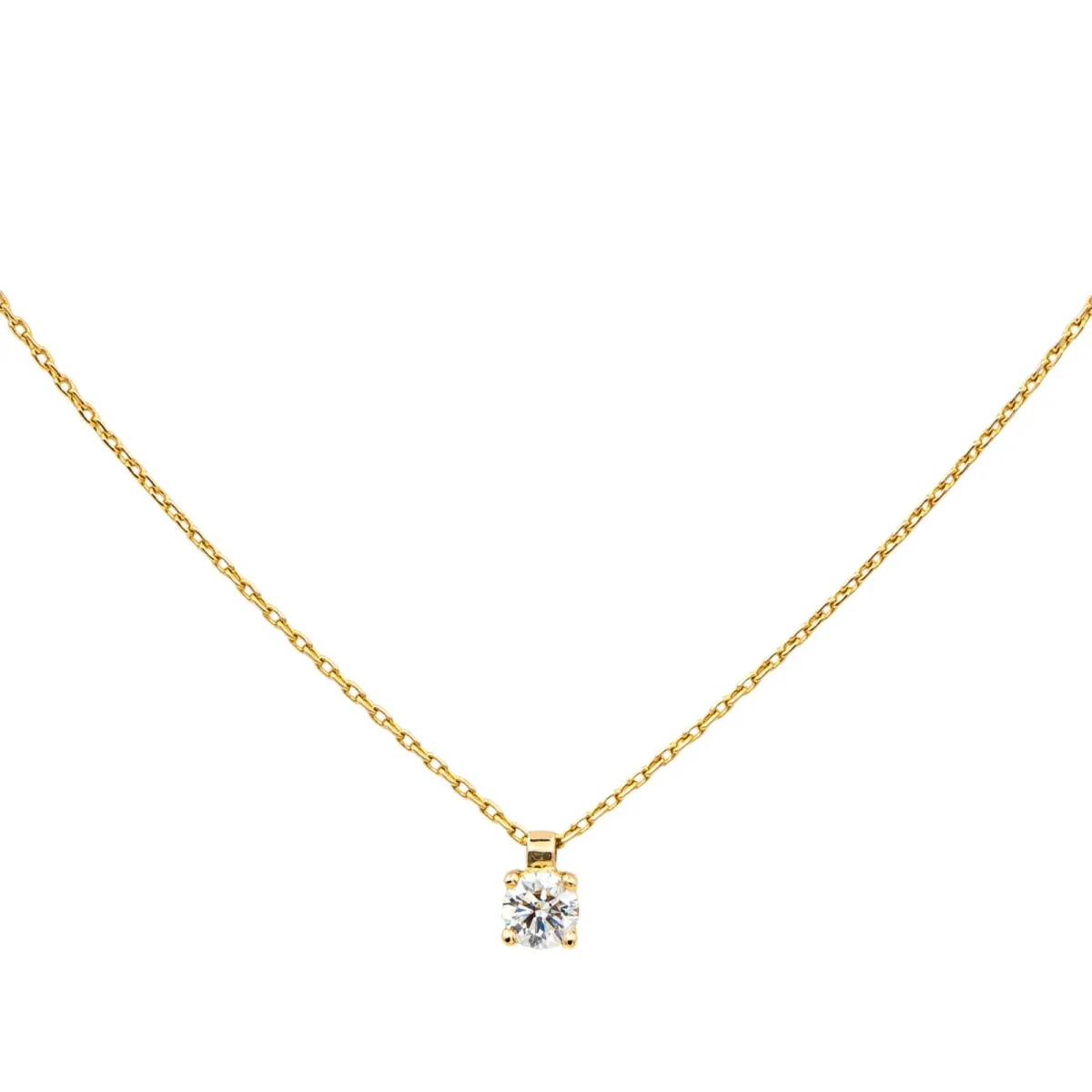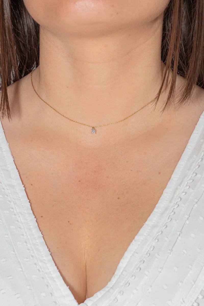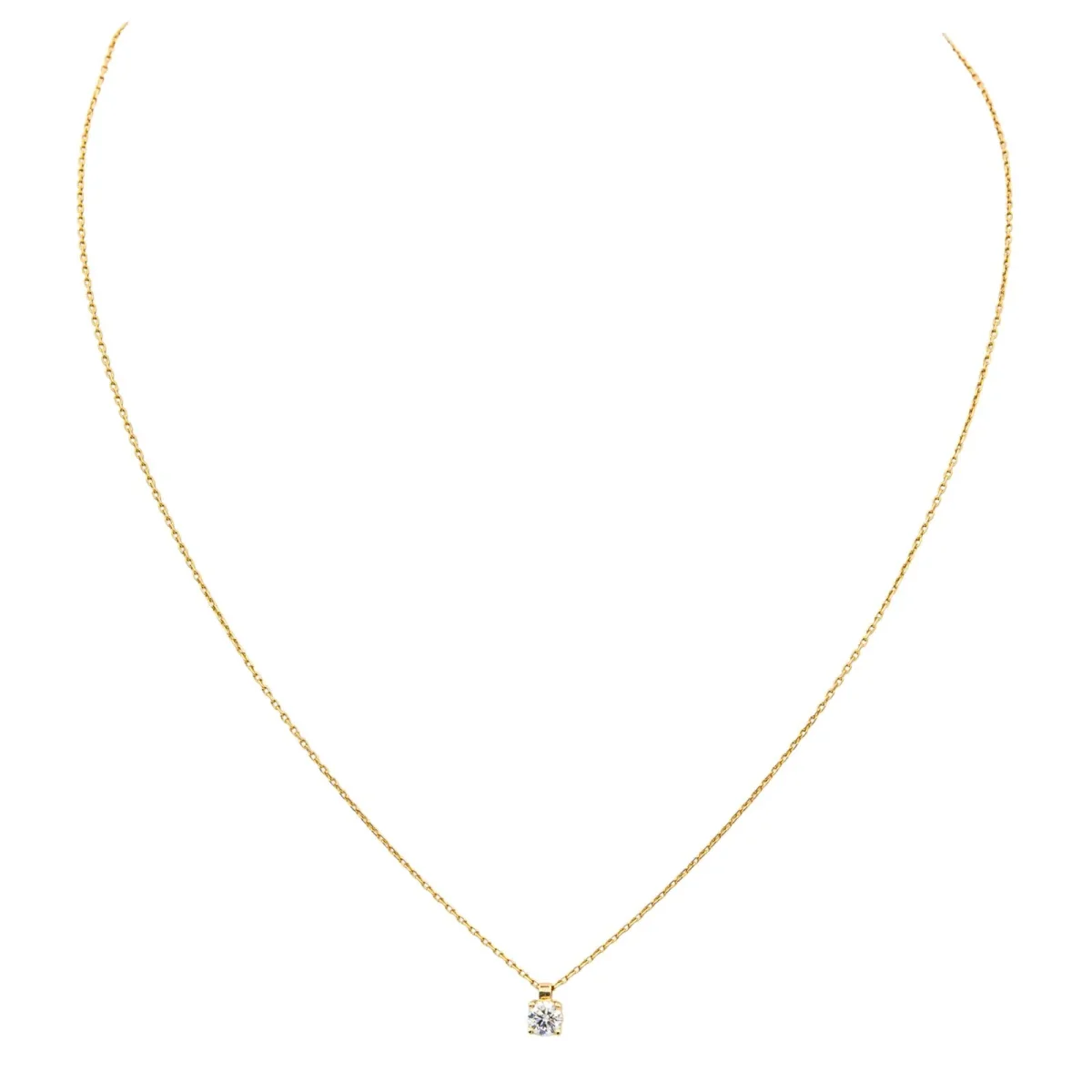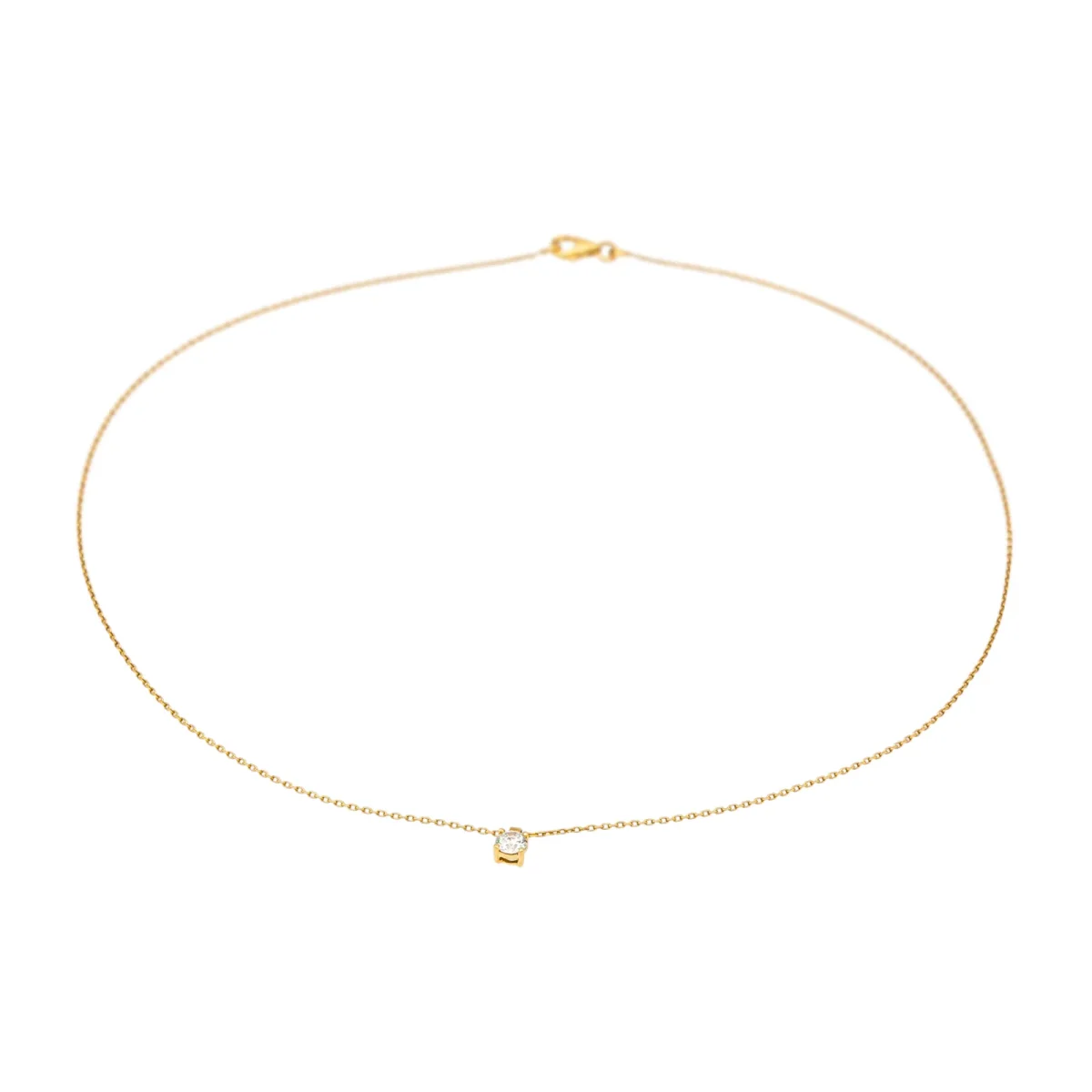 Collier solitaire en or jaune 750 millièmes (18 carats), serti d’un diamant taille brillant environ H/VS, d’un poids total d’environ 0,25 ct, longueur: 43 cm, poids total :2,17 g, poinçon tête d’aigle, excellent état