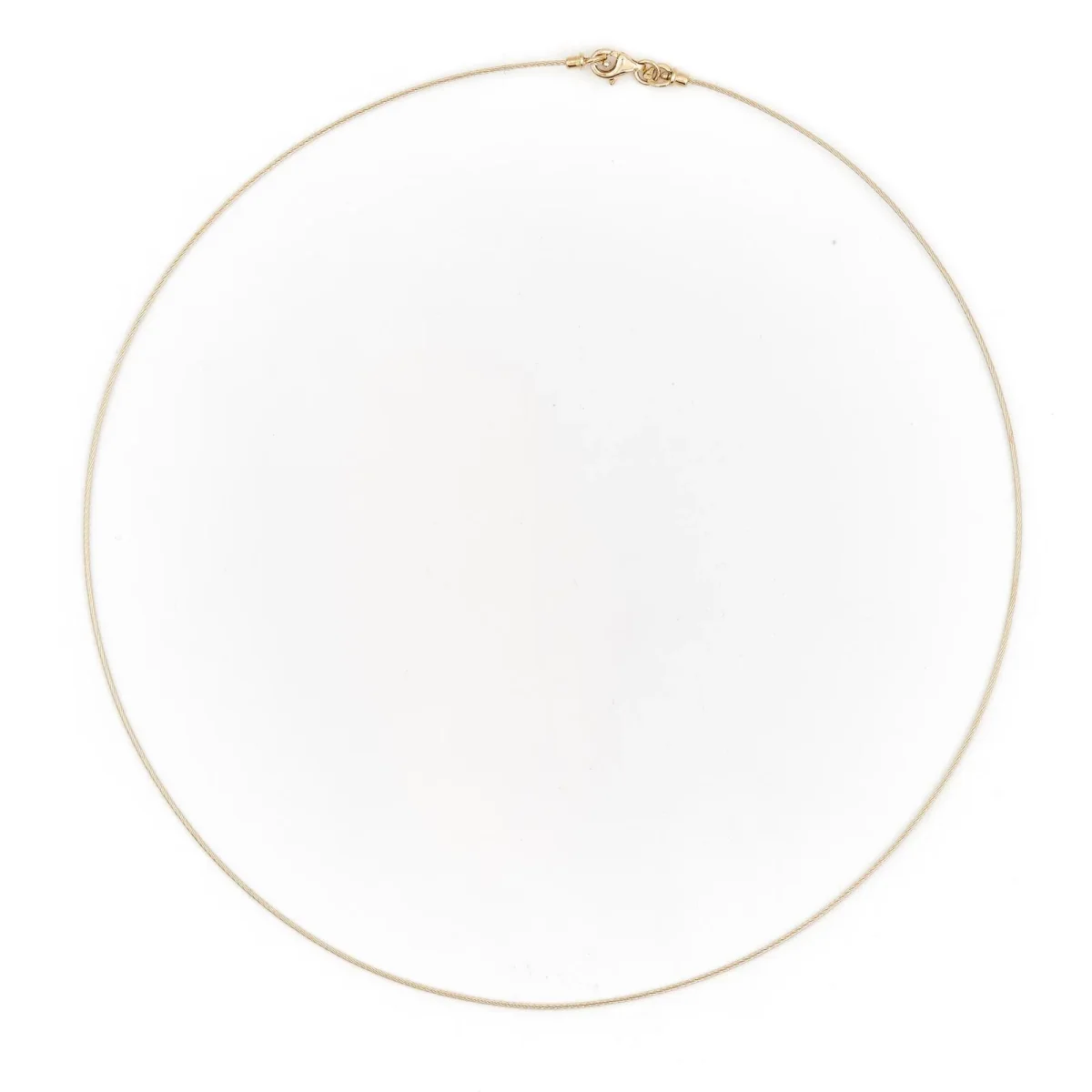 Collier fil rigide, en or jaune 750 millièmes (18 carats) testé, fils torsadés, longueur : 42 cm, largeur: 0,03 cm, poids total: 2,82 g, excellent état.