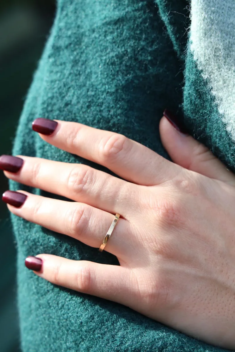 Alliance signée de la maison Dinh Van, collection Carrée, en or jaune 750 millièmes (18 carats), largeur : 0,20 cm, tour de doigt : 52, poids total : 2,55 g, poinçon tête d’aigle, prix neuf: 890€, excellent état