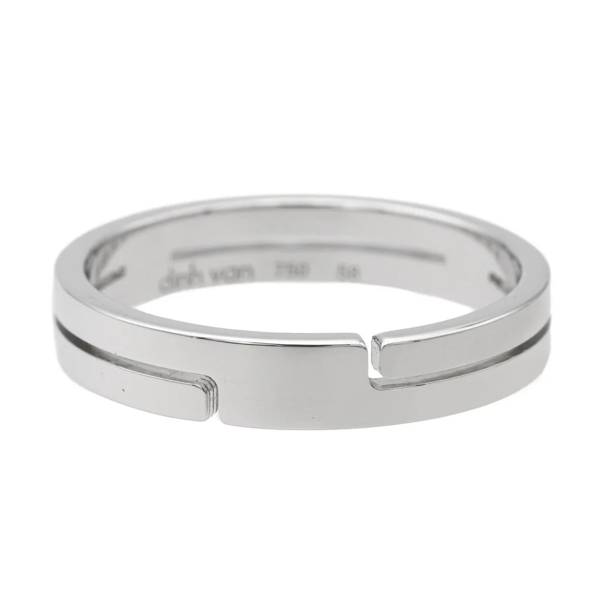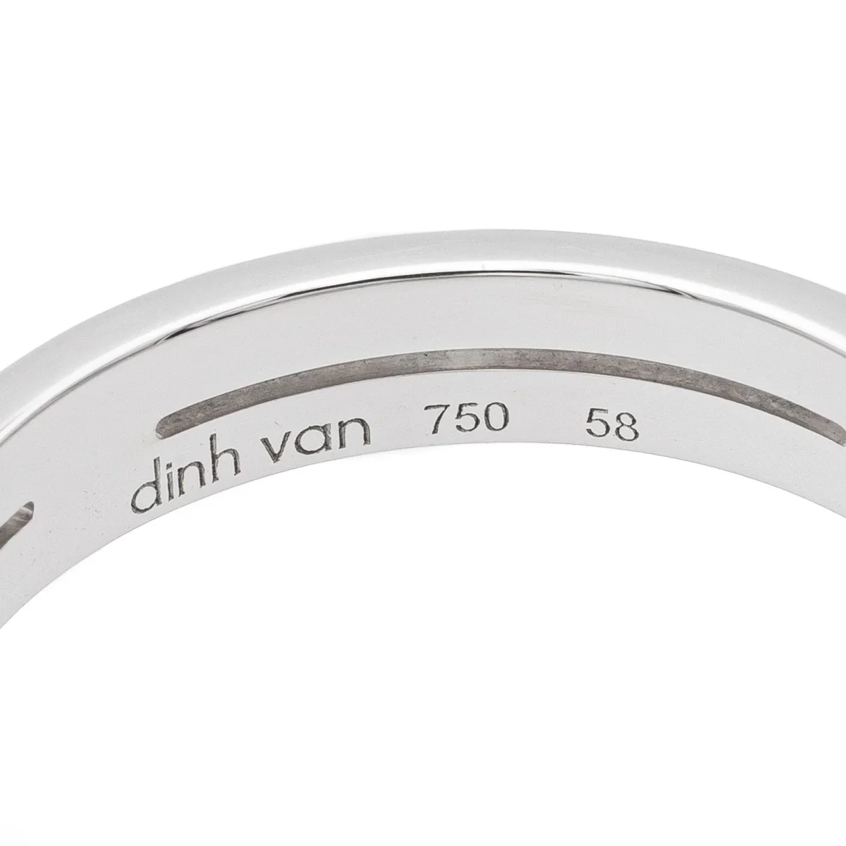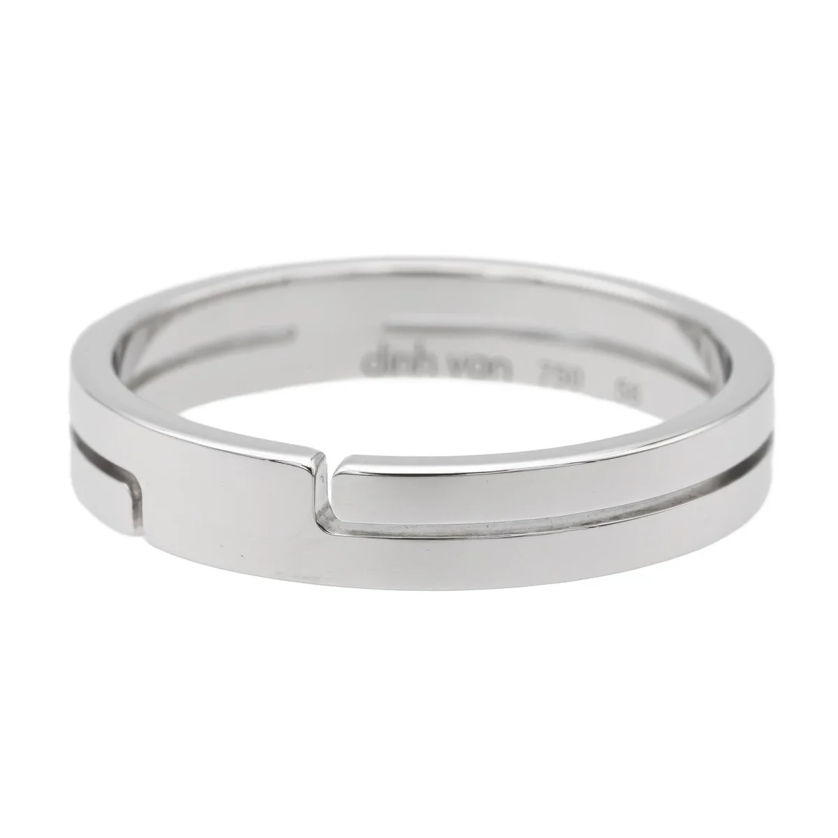 Bague signée de la Maison Dinh Van, collection Seventies PM, en or blanc 750 millièmes (18 carats), largeur: 0,40 cm, taille de doigt: 58, Poids total: 4.39 g, poinçon tête d’aigle, prix neuf: 1650€, excellent état