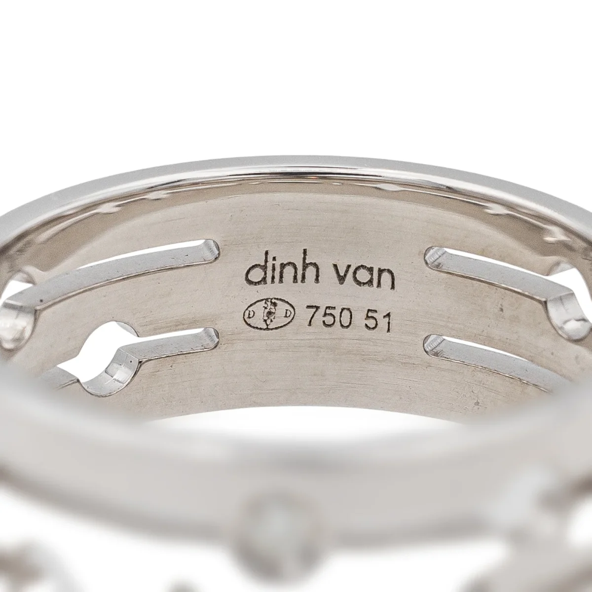 Bague signée de la Maison Dinh Van, collection Pulse moyen modèle, en or blanc 750 millièmes (18 carats), sertie de 5 diamants taille brillant, environ G-VS, d’un poids total d’environ 0,05 ct (chaque diamant d’un poids d’environ 0,01ct), largeur sur le dessus : 0,68 cm, tour de doigt : 51, poids total: 5,32 g, poinçon tête d’aigle, (full set), excellent état