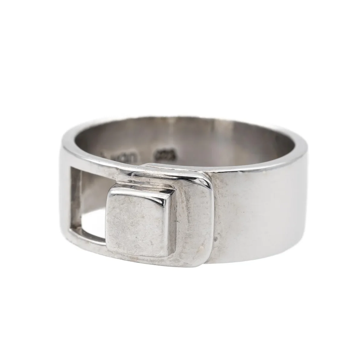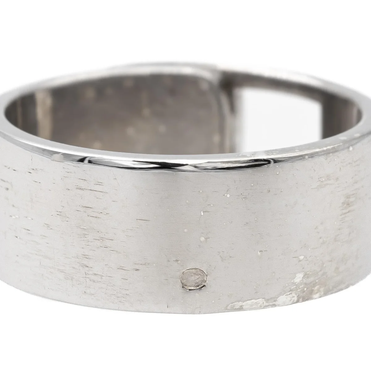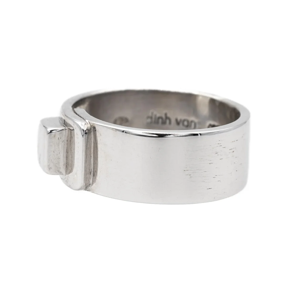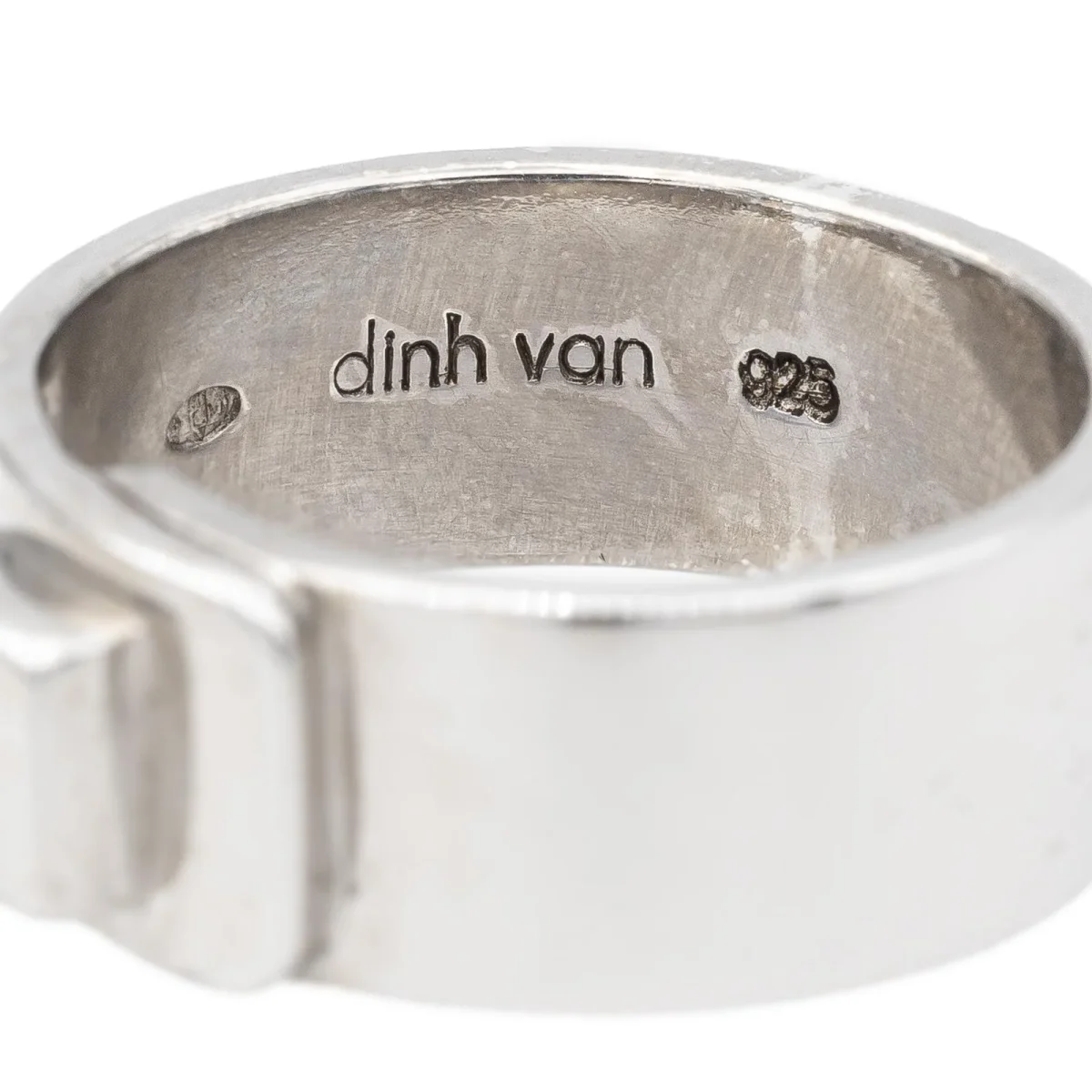 Bague Dinh Van en argent 925 millièmes, modèle serrure, trace de rhodiage, largeur sur le dessus : 0,77 cm, tour de doigt : 51, poids total : 7,15 g, poinçon cygne, bon état