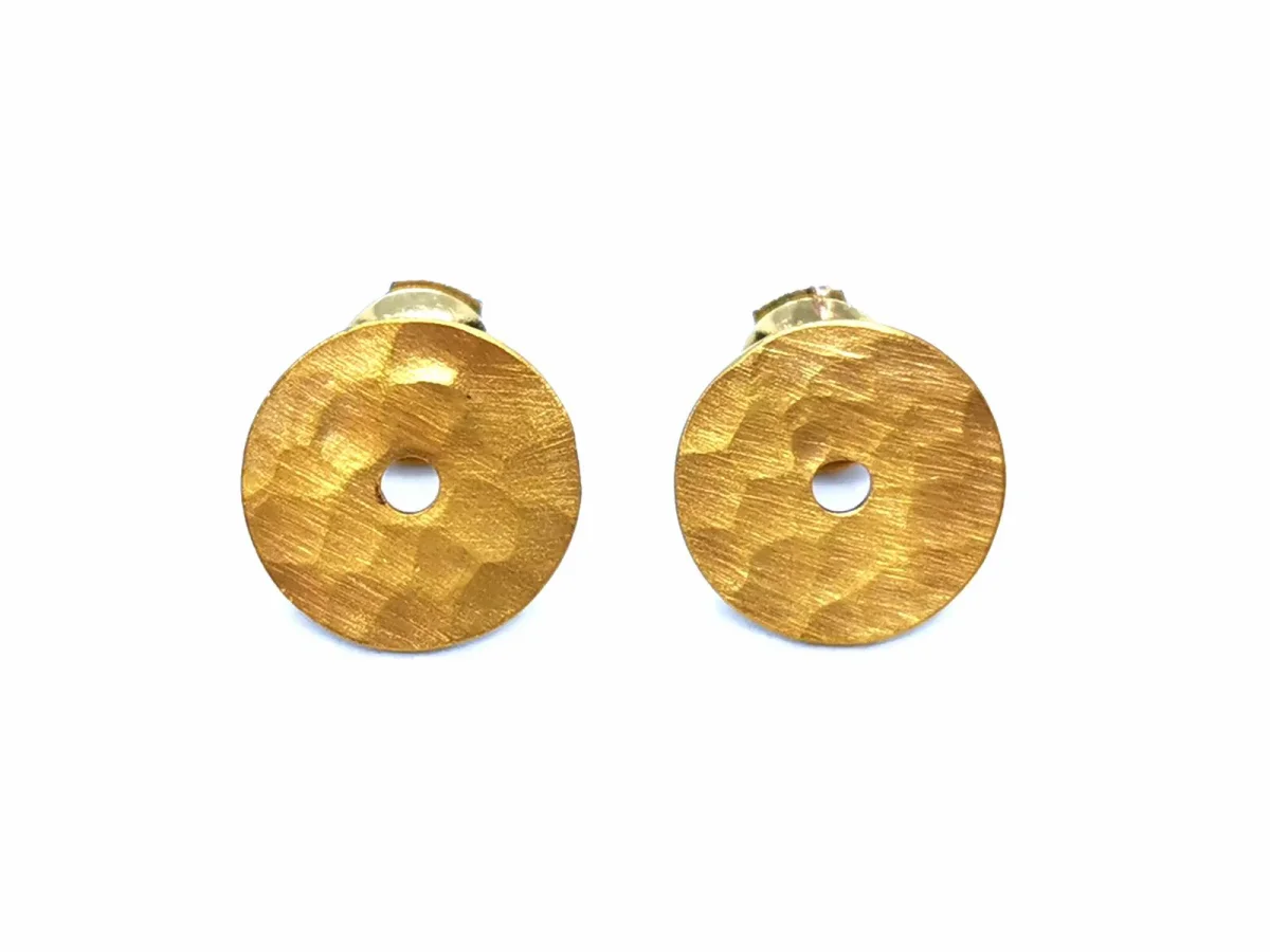 Boucles d’oreilles signées de la maison Dinh Van, en or 999 millèmes (24 carats) testé, fermoir en or 750 millièmes (18 carats), collection Pi Chinois, modèle martelé, diamètre: 1,3 cm, poids total: 4,83 g, excellent état, valeur neuf: 1490€
