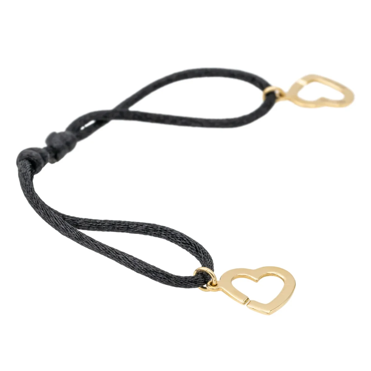 Bracelet cordon signé de la Maison Dinh Van, collection « Double cœur » R13, en or jaune 750 millièmes (18 carats) testé, longueur : 15,50 cm, largeur: 1,30 cm, épaisseur : 0,13 cm, taille ajustable grâce aux noeuds coulissants du cordon, poids total : 3,07 g, excellent état