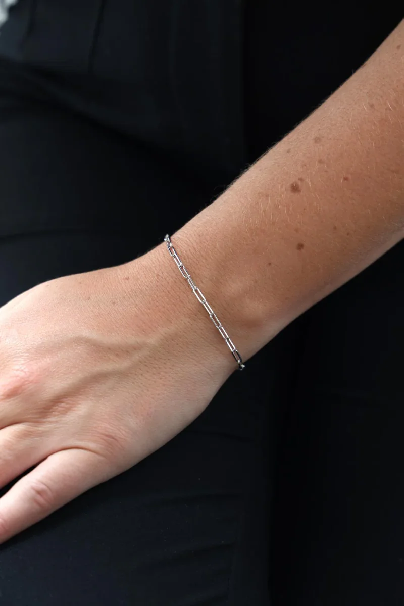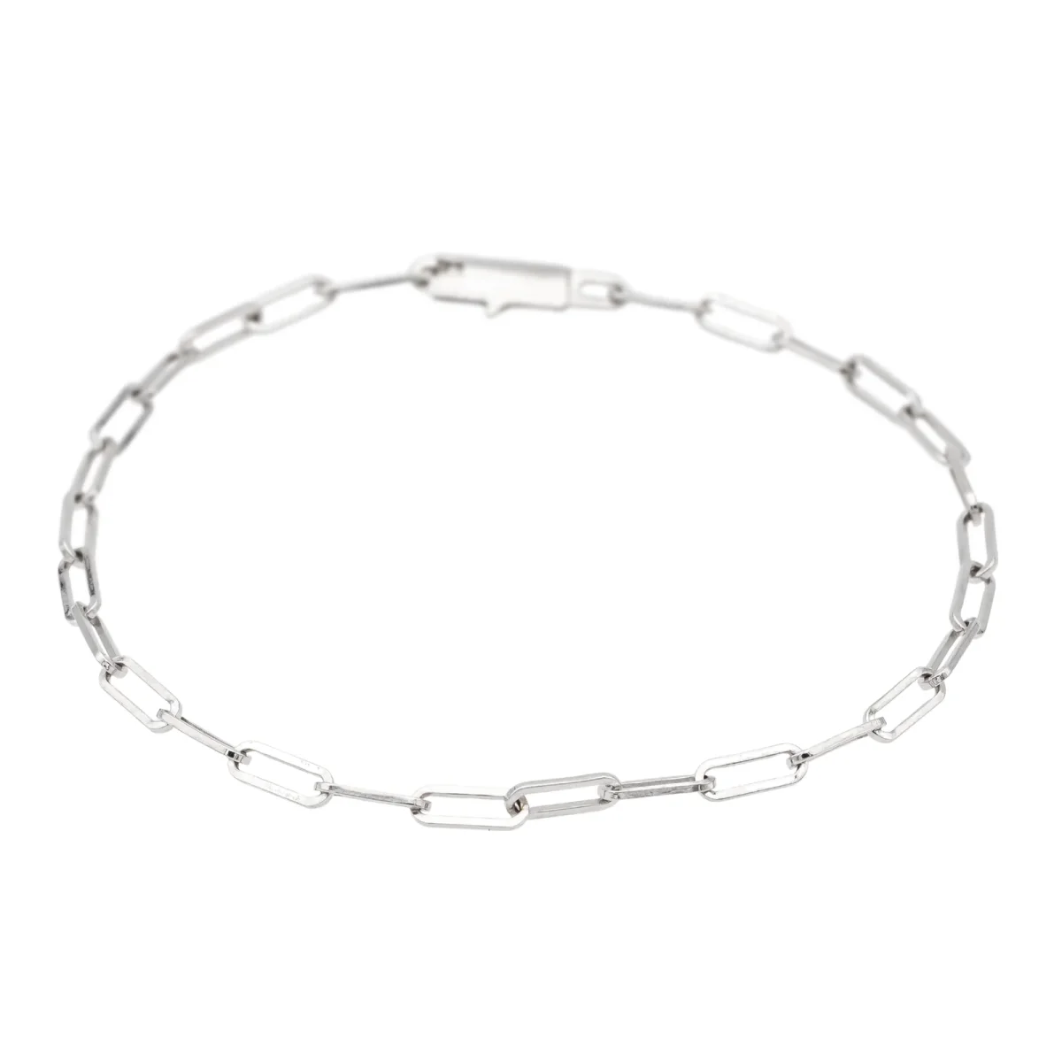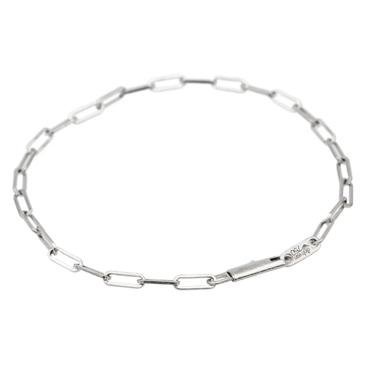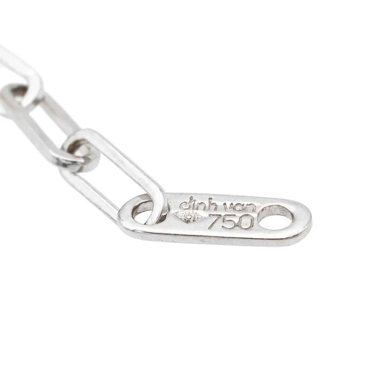 Bracelet signé de la maison Dinh Van, en or blanc 750 millièmes (18 carats), modèle Maillon, longueur de la chaine : 16,5 cm, largeur: 0,22 cm, taille d’un maillon : 0,6 cm x 0,22 cm, poids total : 2,20 g, poinçon tête d’aigle, excellent état