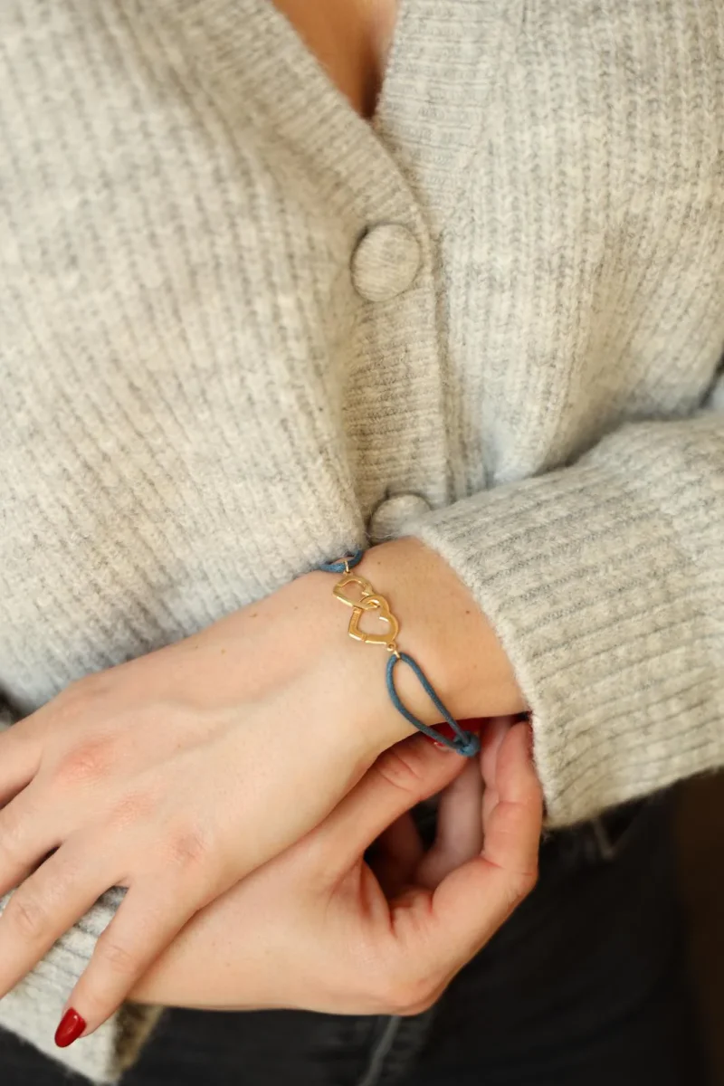Bracelet signée de la maison Dinh Van, en or jaune 750 millièmes (18 carats), modèle double menottes cœur R13, taille du cordon ajustable, poids total : 3,22 g, testé, excellent état