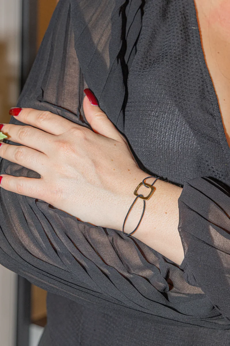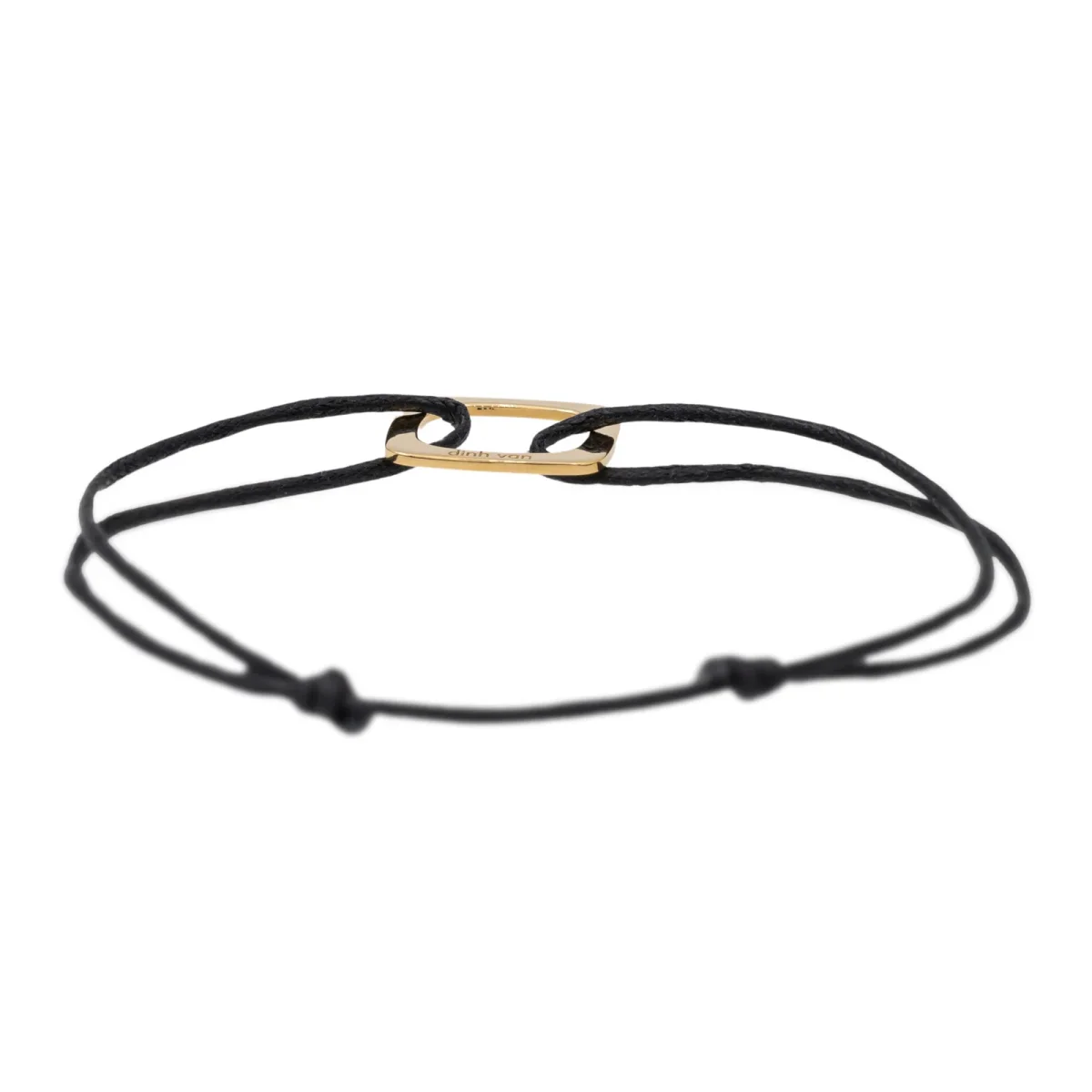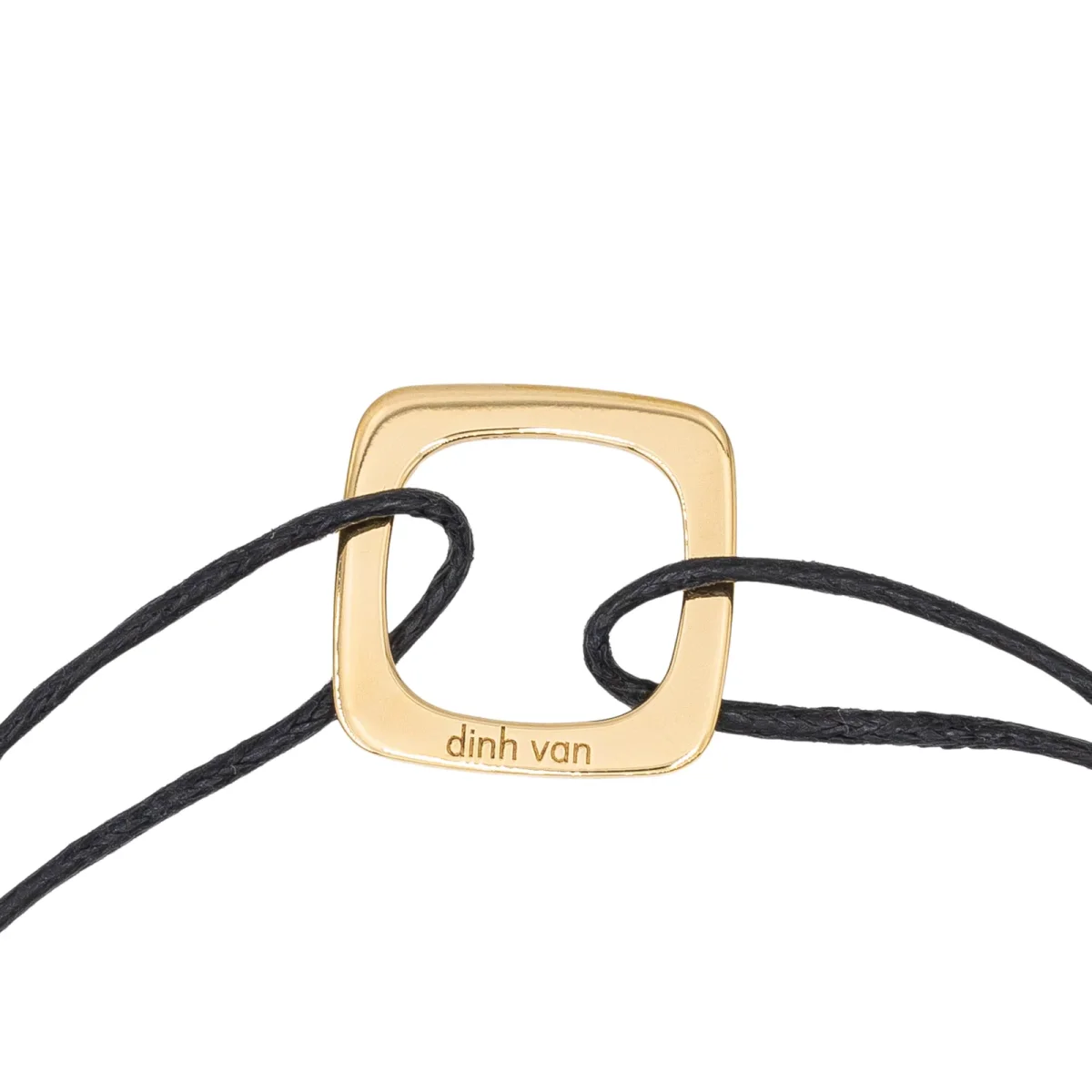 Bracelet cordon signé de la Maison Dinh Van, Impression grand modèle, en or jaune 750 millièmes (18 carats) testé, motif carré ajouré, taille du cordon ajustable, dimensions : 1,50 cm x 1,50 cm, épaisseur: 0,93 cm, poids total bracelet: 1,73 g, excellent état