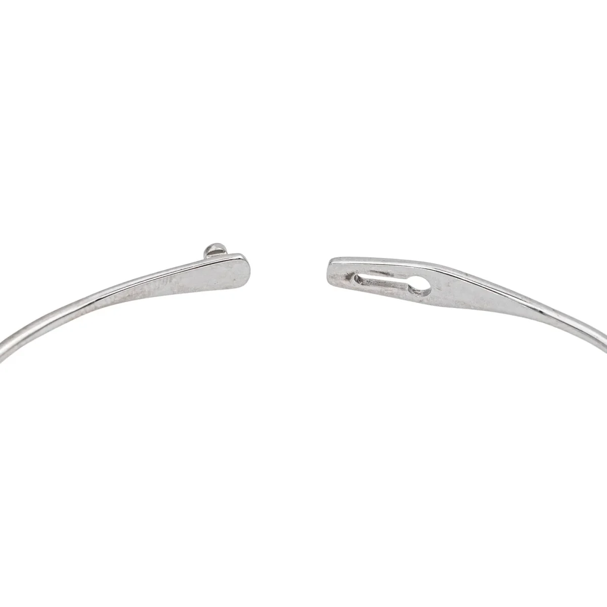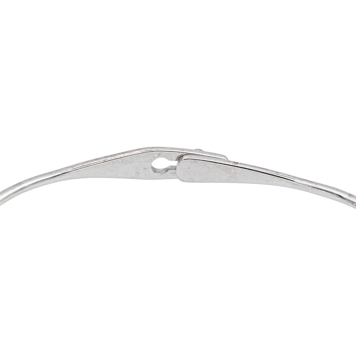 Bracelet jonc signé de la Maison Dinh Van en or blanc 750 millièmes (18 carats), modèle Serrure, diamètre intérieur : 5,70 cm x 4,80 cm, largeur : 0,46 cm, longueur : 18 cm, poids total : 5,81 g, poinçon tête d’aigle, excellent état
