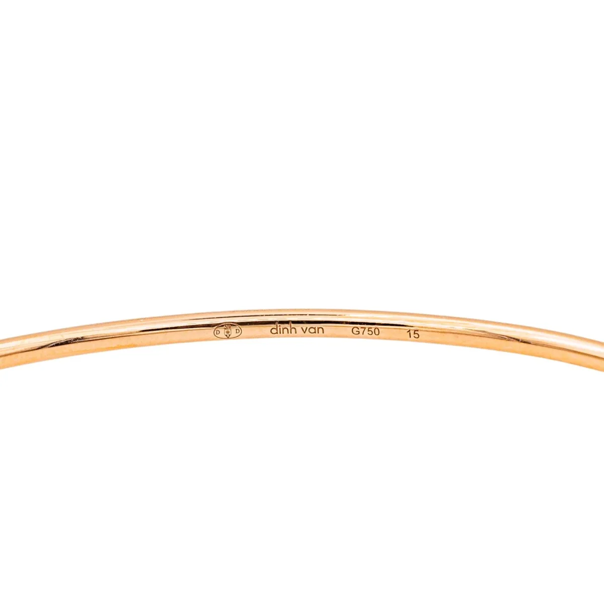 Bracelet jonc signé de la Maison Dinh Van en or rose 750 millièmes (18 carats), modèle serrure, serti d’un diamant taille brillant, environ H-VS, poids total environ 0,03 ct, ouvrant, diamètre intérieur : 5,30 cm x 4,44 cm, largeur : 0,50 cm, longueur : 15,00 cm, poids total : 5,68 g, poinçon tête d’aigle, excellent état