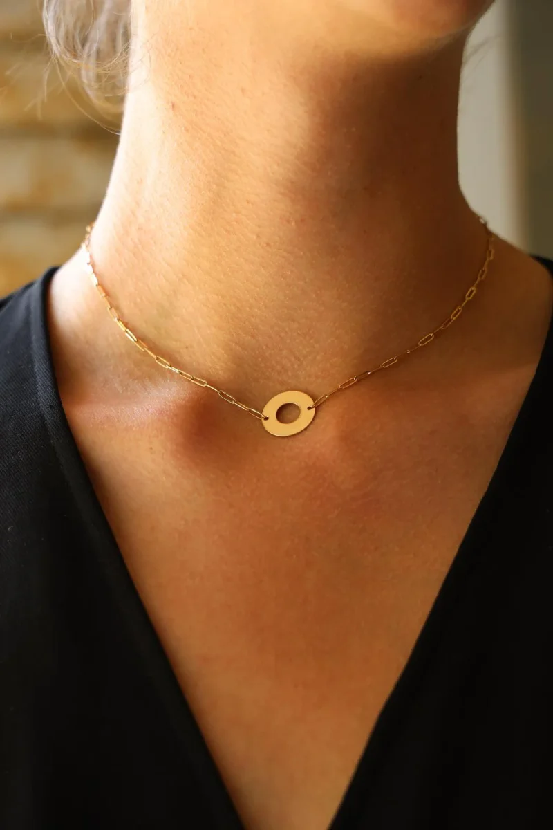 Collier « Cible » de 1970 signé Dinh Van, en or jaune 750 millièmes (18 carats), maille Dinh Van, longueur: 39 cm, diamètre du motif: 1,62 cm, poids total: 4,45 g, poinçon tête d’aigle, excellent état