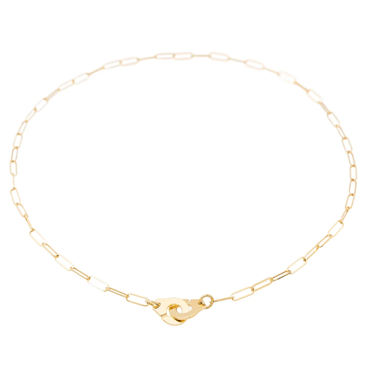 Collier en or jaune 750 millièmes (18 carats), signé de la Maison Dinh Van, modèle menottes R10, longueur: 42,0 cm, largeur: 0,29 cm, dimensions du fermoir menottes: 1,0 cm x 1,9 cm, poids total: 7,28 g, poinçon hibou, excellent état