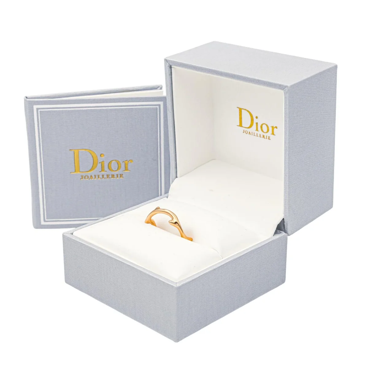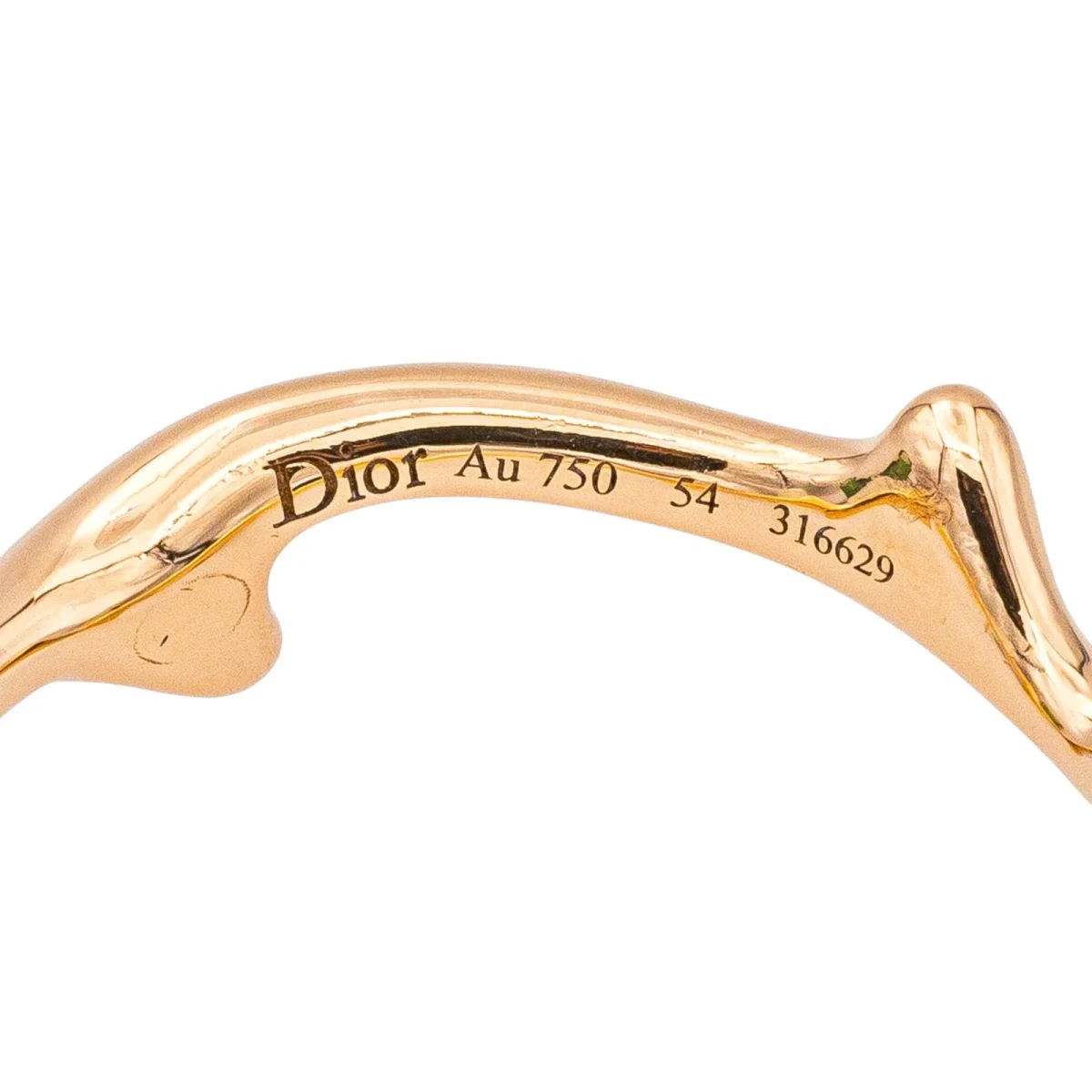 Bague signée de la Maison Dior en or rose 750 millièmes (18 carats), modèle Bois de Rose, largeur sur le dessus : 0,53 cm, tour de doigt : 54, poids total : 3,23 g, poinçon tête d’aigle, vendue avec écrin d’origine et d’époque, certificat d’authenticité, numérotée : 316629, excellent état