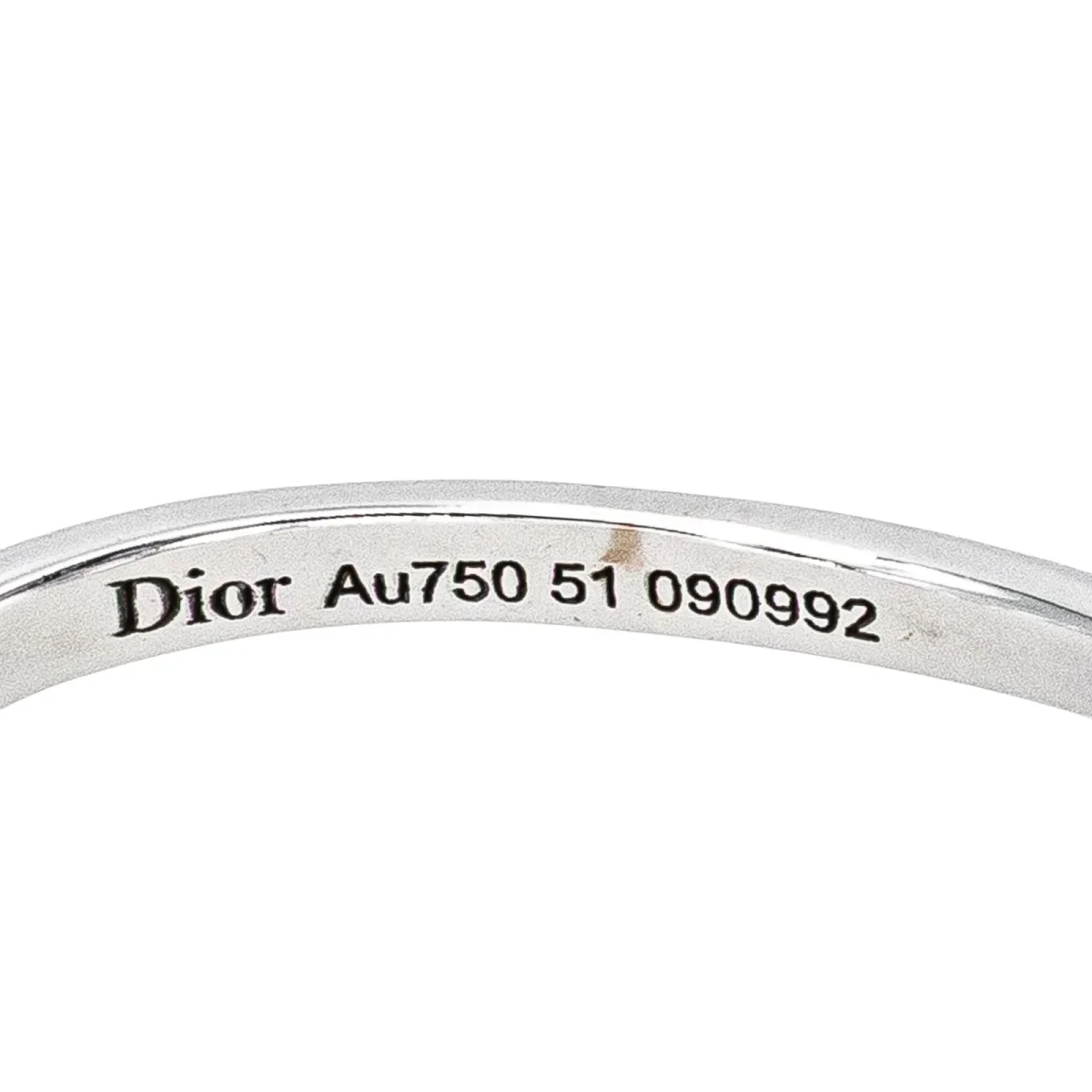 Bague signée de la Maison Dior en or blanc 750 millièmes (18 carats), modèle Dioramour, sertie d’un diamant taille brillant, environ H-SI, d’un poids total d’environ 0,03 ct, largeur sur le dessus : 0,76 cm, tour de doigt : 48, poids total : 1,73 g, poinçon tête d’aigle, numérotée : 090992, excellent état