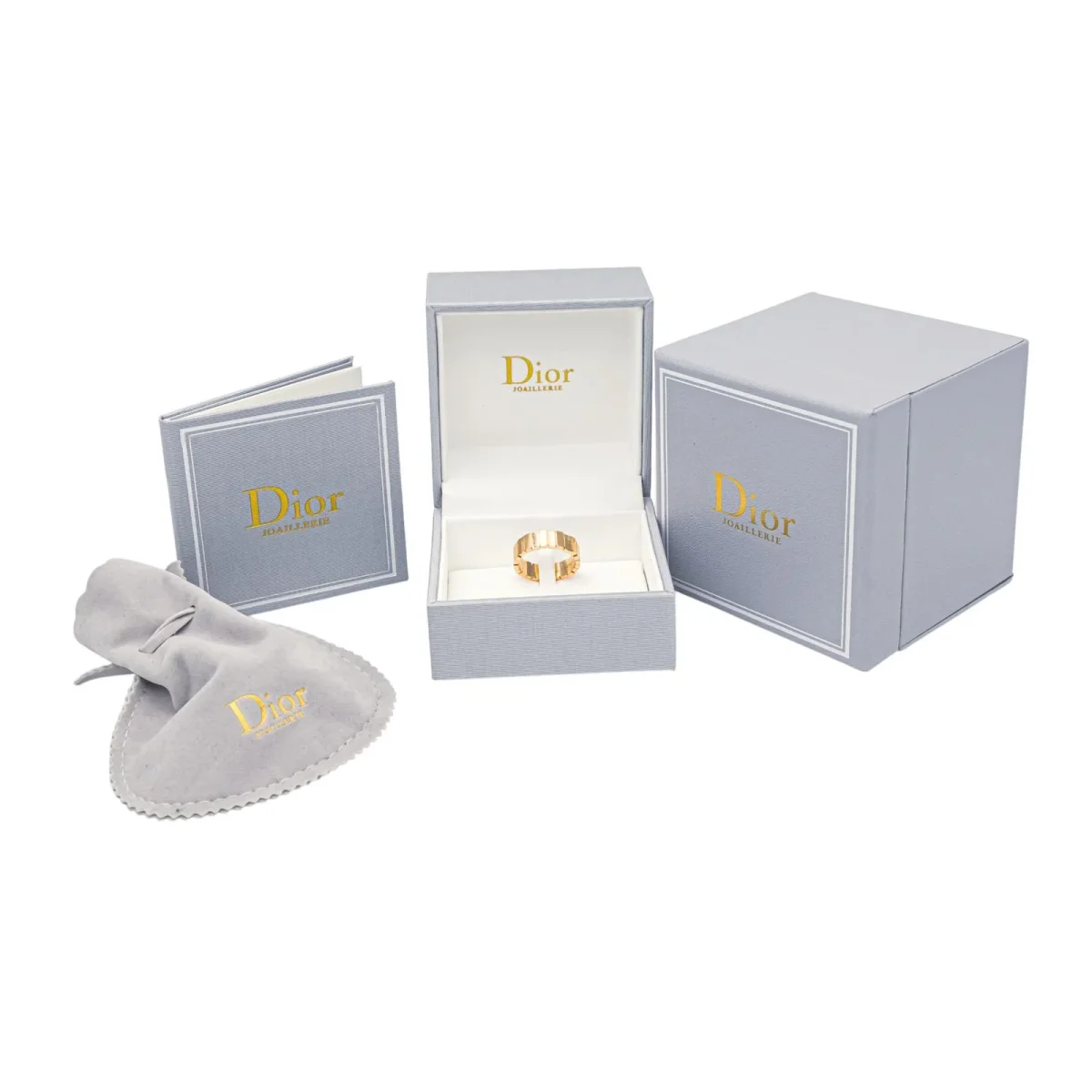 Bague signée de la Maison Dior, collection Gem Dior, en or rose 750 millièmes (18 carats), taille : 51, largeur : 0,55 cm, poids total : 5,95 g, Numérotée n° 539482, poinçon tête d’aigle, écrin et certificat Dior d’origine, excellent état