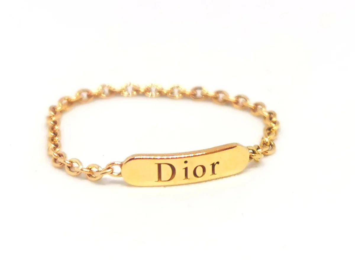 Bague chaînette, signée de la maison Dior, en or jaune 750 millièmes (18 carats), largeur sur le dessus: 0,23 cm, tour de doigt: 55, poids total: 0,52 g, poinçon tête d’aigle, avec son écrin, excellent état.