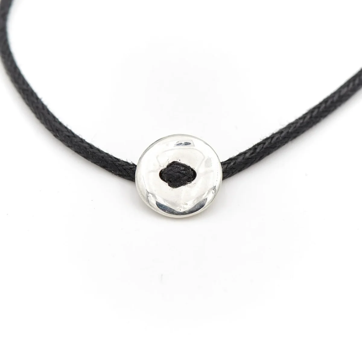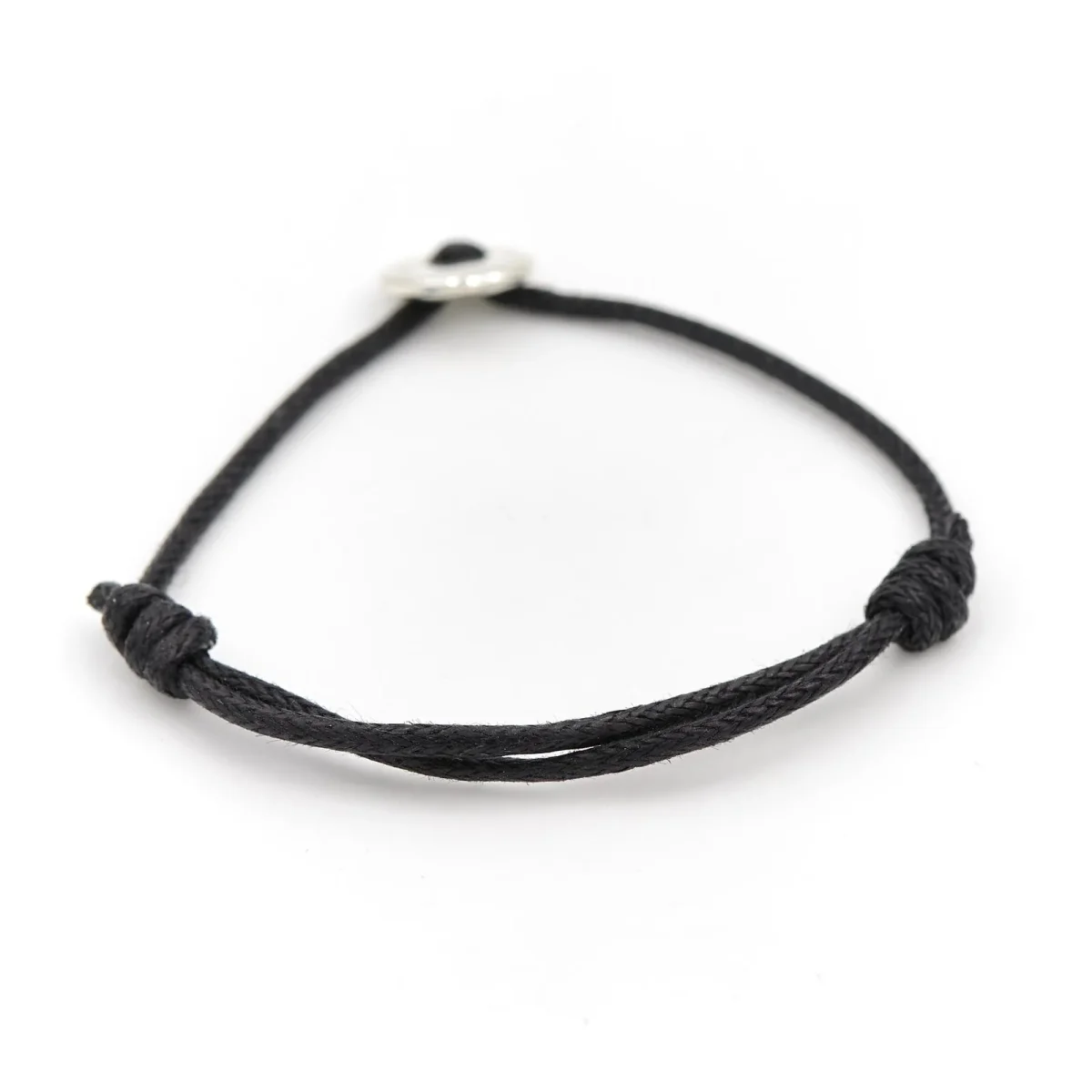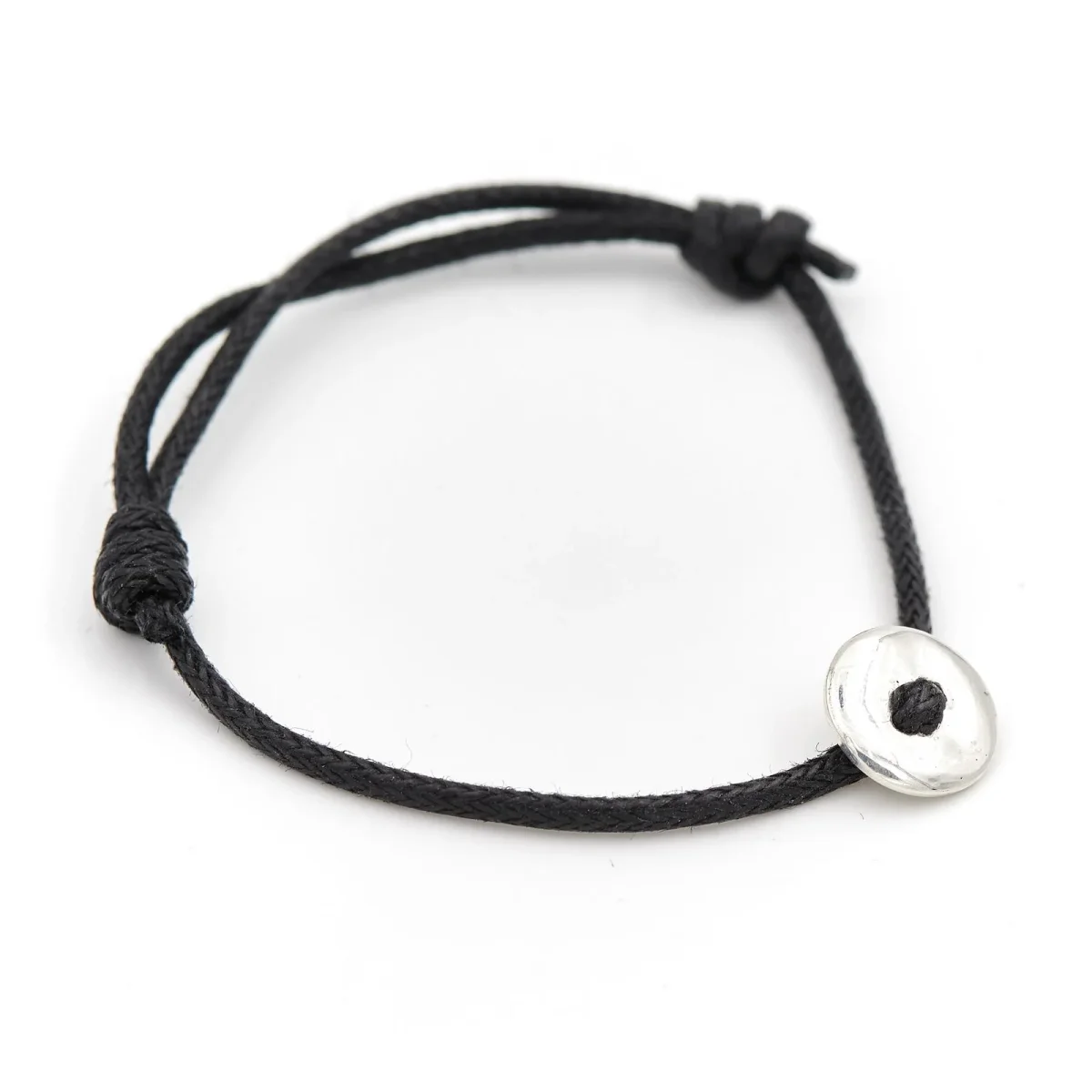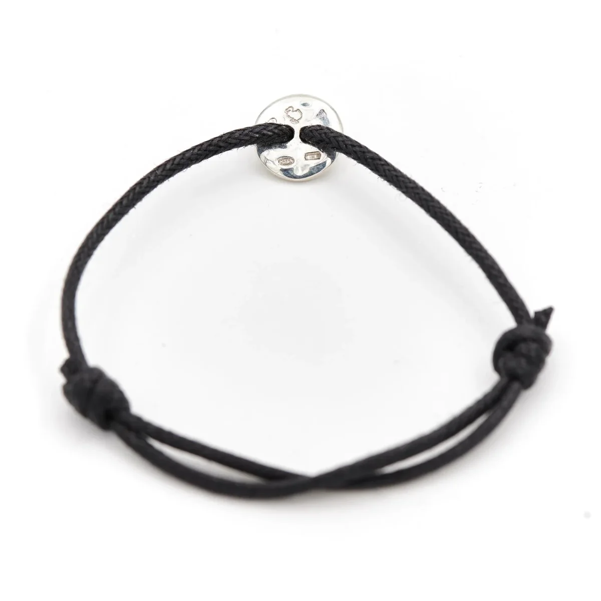 Bracelet signé de la Maison Dodo Pomellato en argent 925 millièmes, modèle Dodo sur cordon ajustable, Diamètre du bouton: 1,15 cm, Longueur du bracelet : 17 cm, réglable, signé et numéroté: 1468, Poids total: 2,40 g, Excellent état