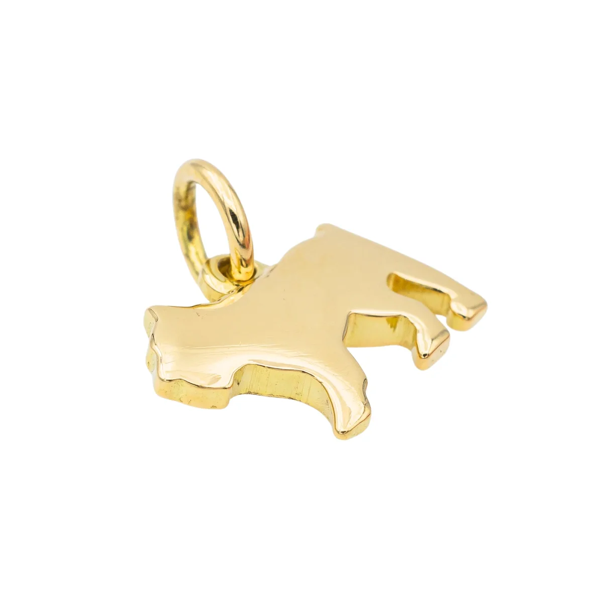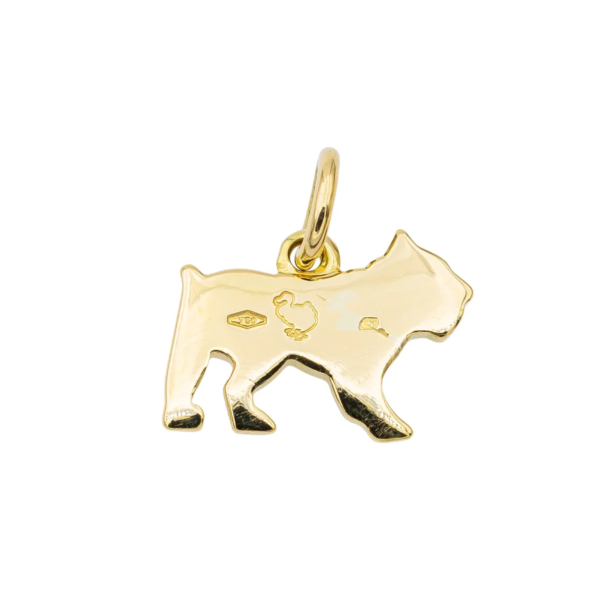 Pendentif signé Dodo Pomellato, en or jaune 750 millièmes (18 carats) testé, moyen modèle chien, dimensions avec la bélière: 1,37 cm x 1,31 cm, vendu avec écrin d’origine, prix neuf 260€, poids total: 2,00 g, excellent état