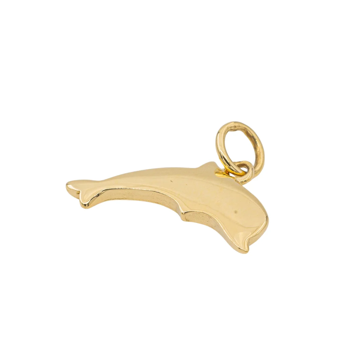 Pendentif DODO Pomellato dauphin en or jaune 750 millièmes (18 carats), testé, grand modèle, dimensions : 1.87 cm x 1.02 cm, vendu avec écrin et certificat d’authenticité, signature effacée au polissage, poids : 2,10 g, excellent état